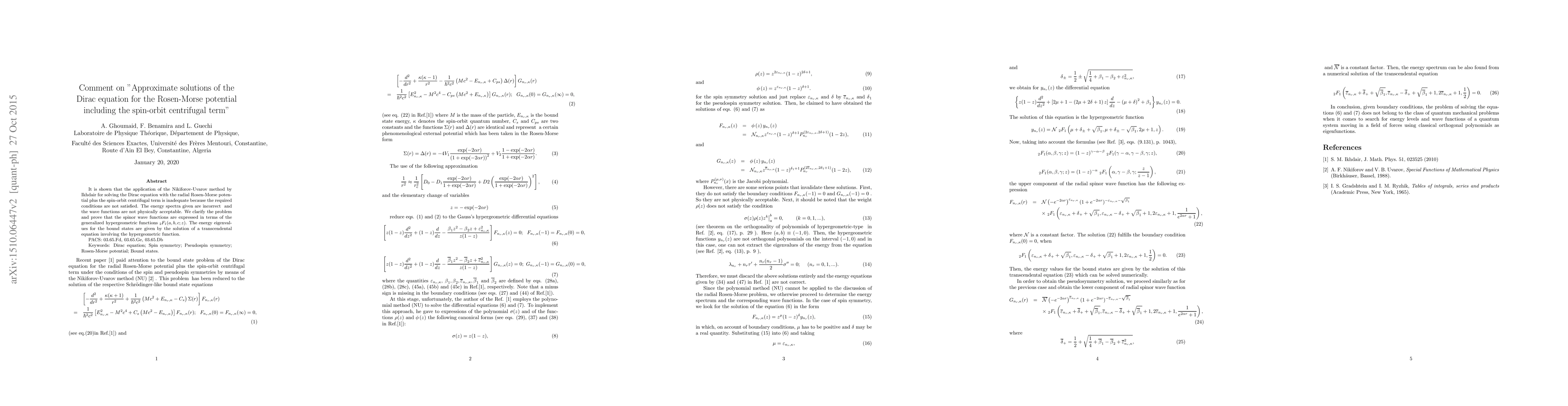 This paper critiques Ikhdair's use of the Nikiforov-Uvarov method for solving the Dirac equation with the Rosen-Morse potential and spin-orbit term, finding the approach inadequate due to unmet conditions. It proposes a correct method using generalized hypergeometric functions for spinor wave functions and a transcendental equation for energy eigenvalues.