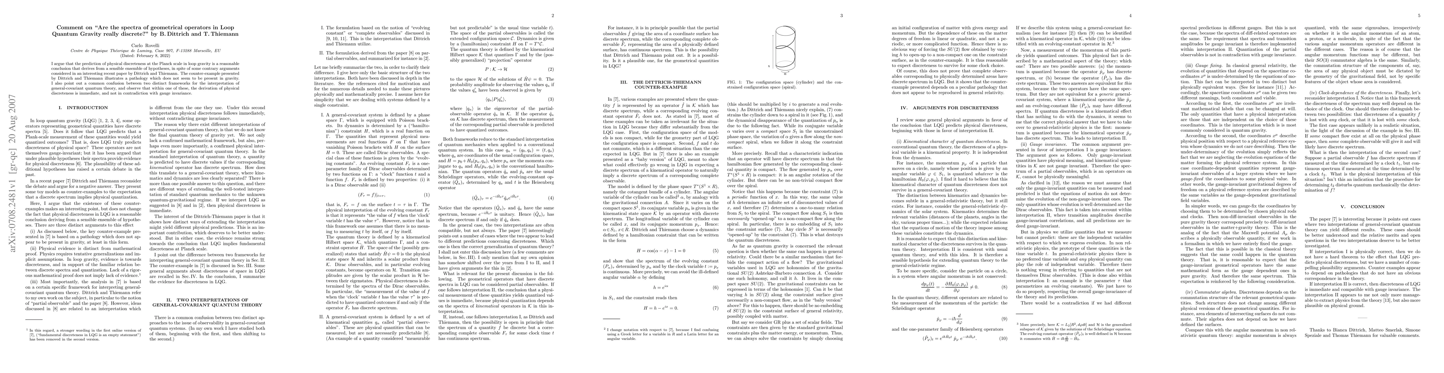 I argue that the prediction of physical discreteness at the Planck scale in loop gravity is a reasonable conclusion that derives from a sensible ensemble of hypotheses, in spite of some contrary arguments considered in an interesting recent paper by Dittrich and Thiemann. The counter-example presented by Dittrich and Thiemann illustrates a pathology which does not seem to be present in gravity. I also point out a common confusion between two distinct frameworks for the interpretation of general-covariant quantum theory, and observe that within one of these, the derivation of physical discreteness is immediate, and not in contradiction with gauge invariance.