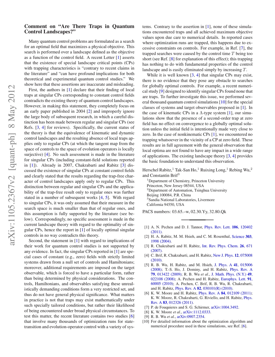 A study corrects a claim that special landscape critical points in quantum control landscapes do not trap, finding that these points can indeed have profound implications for quantum control studies.