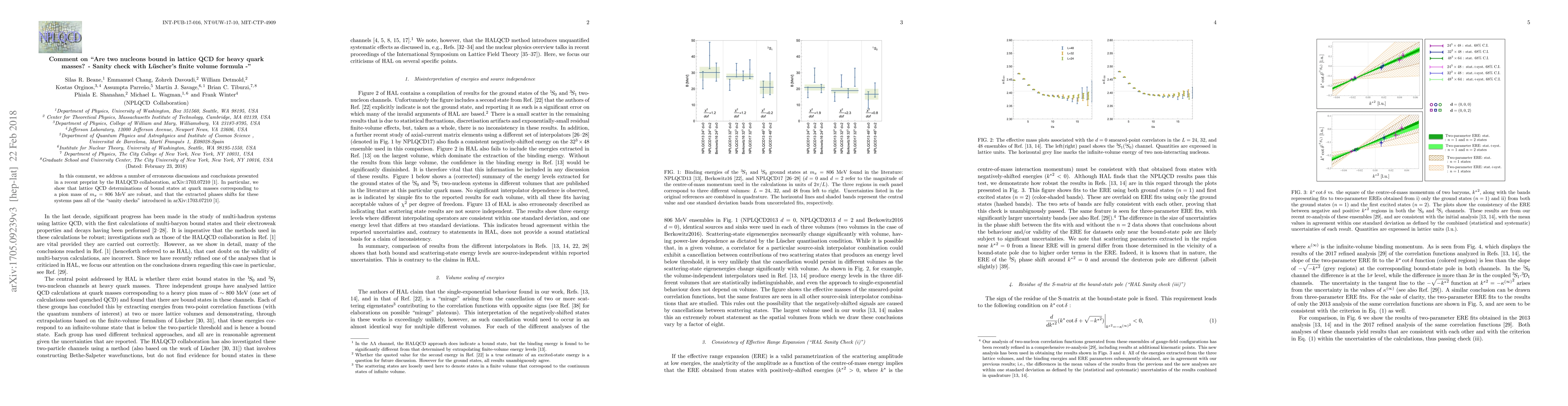 In this comment, we address a number of erroneous discussions and conclusions presented in a recent preprint by the HALQCD collaboration, arXiv:1703.07210. In particular, we demonstrate that lattice QCD determinations of bound states at quark masses corresponding to a pion mass of $m_\pi = 806$ MeV are robust, and that the phases shifts extracted by the NPLQCD collaboration for these systems pass all of the 'sanity checks' introduced in arXiv:1703.07210.