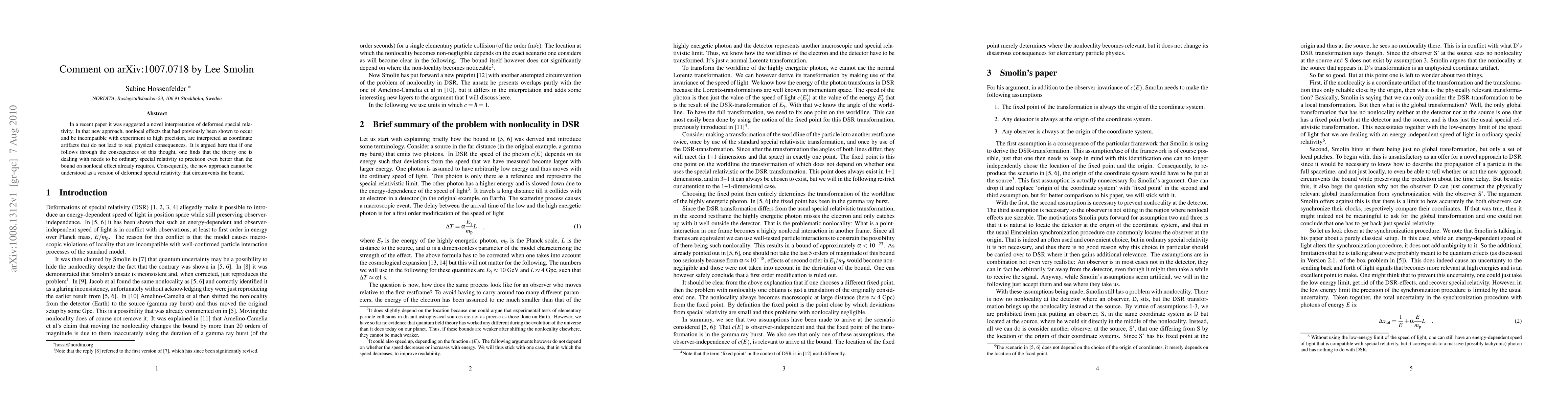 In a recent paper it was suggested a novel interpretation of deformed special relativity. In that new approach, nonlocal effects that had previously been shown to occur and be incompatible with experiment to high precision, are interpreted as coordinate artifacts that do not lead to real physical consequences. It is argued here that if one follows through the consequences of this thought, one finds that the theory one is dealing with needs to be ordinary special relativity to precision even better than the bound on nonlocal effect already requires. Consequently, the new approach cannot be understood as a version of deformed special relativity that circumvents the bound.