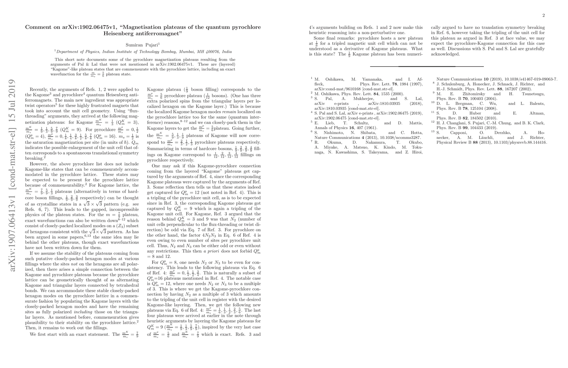 This short note documents some of the pyrochlore magnetization plateaus resulting from the arguments of Pal & Lal that were not mentioned in arxiv:1902.06475v1. These are (layered) "Kagome"-like plateaus that are commensurate with the pyrochlore lattice, including an exact wavefunction for the $\frac{m}{m_s} = \frac{5}{6}$ plateau state.