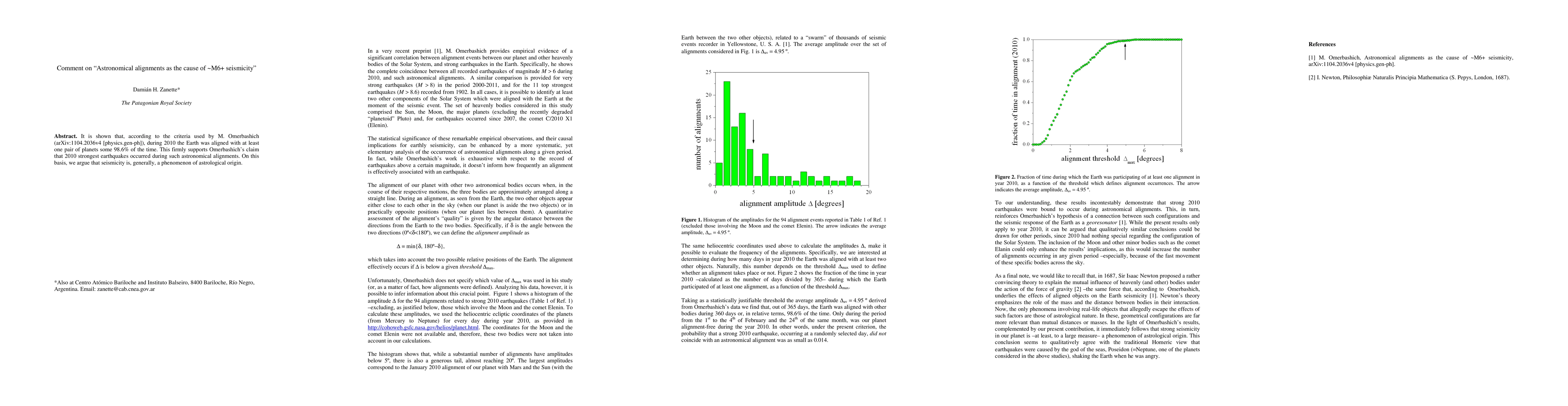 It is shown that, according to the criteria used by M. Omerbashich (arXiv:1104.2036v4 [physics.gen-ph]), during 2010 the Earth was aligned with at least one pair of planets some 98.6% of the time. This firmly supports Omerbashich's claim that 2010 strongest earthquakes occurred during such astronomical alignments. On this basis, we argue that seismicity is, generally, a phenomenon of astrological origin.