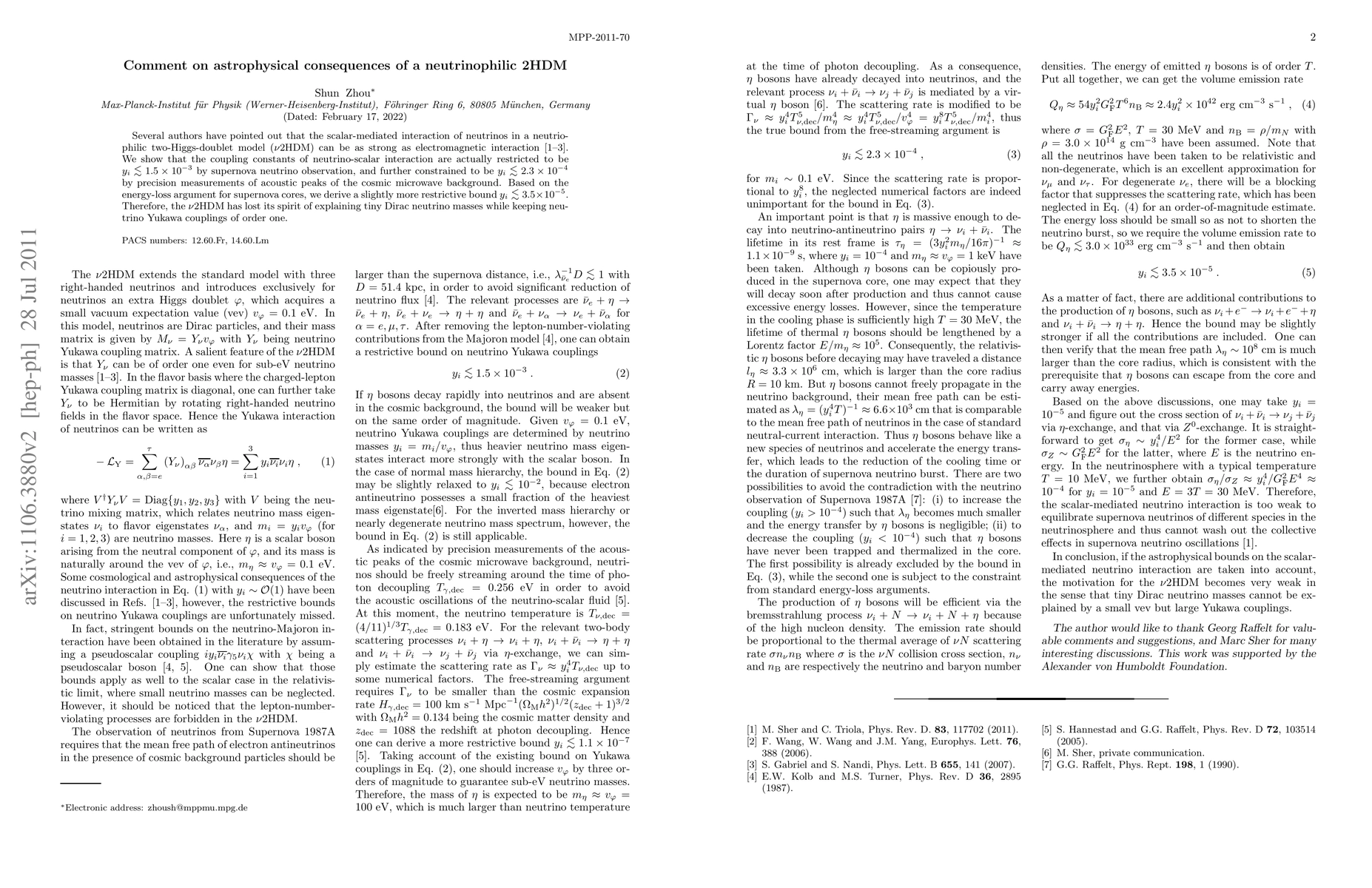 Several authors have pointed out that the scalar-mediated interaction of neutrinos in a neutriophilic two-Higgs-doublet model (nu2HDM) can be as strong as electromagnetic interaction [1-3]. We show that the coupling constants of neutrino-scalar interaction are actually restricted to be y_i < 1.5 x 10^{-3} by supernova neutrino observation, and further constrained to be y_i < 2.3 x 10^{-4} by precision measurements of acoustic peaks of the cosmic microwave background. Based on the energy-loss argument for supernova cores, we derive a slightly more restrictive bound y_i < 3.5 x 10^{-5}. Therefore, the nu2HDM has lost its spirit of explaining tiny Dirac neutrino masses while keeping neutrino Yukawa couplings of order one.
