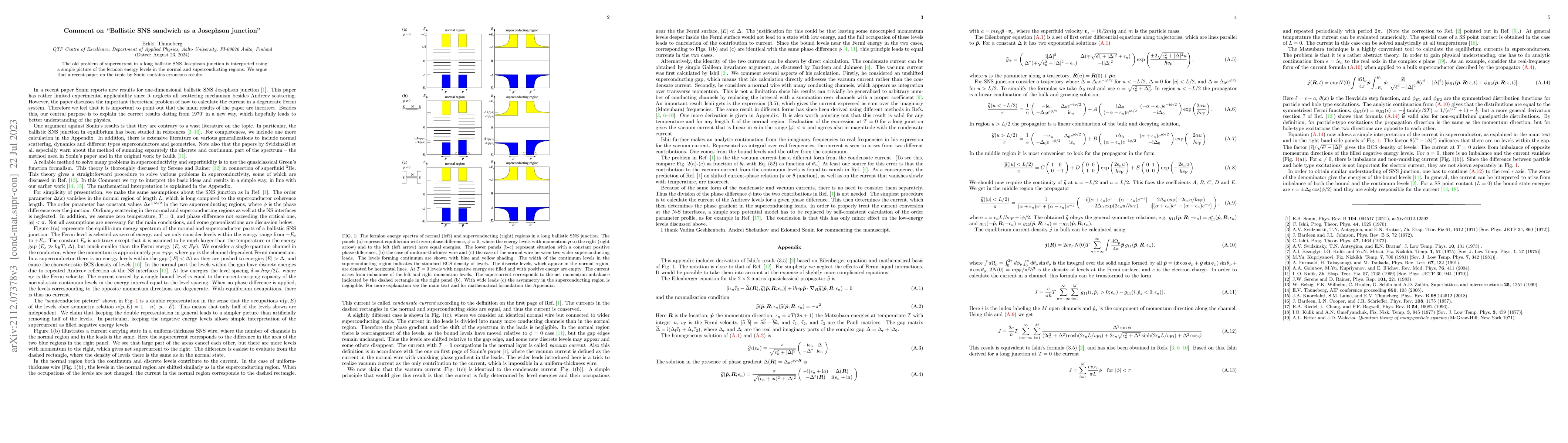 This paper critiques a recent study on ballistic SNS Josephson junctions, proposing a new interpretation of supercurrent through fermion energy levels and asserting that Sonin's results are flawed. The author aims to correct these alleged errors.