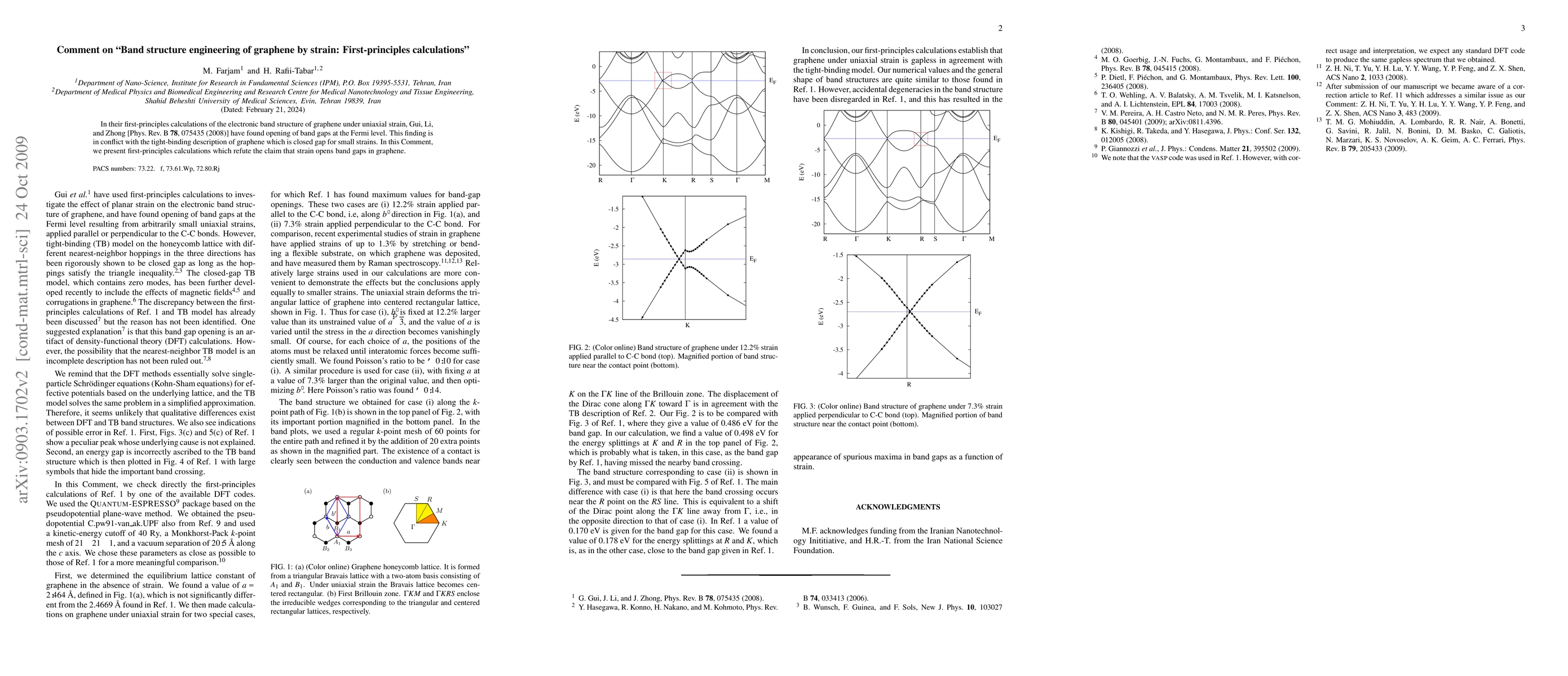 This paper refutes the claim by Gui, Li, and Zhong that uniaxial strain can open band gaps in graphene, using first-principles calculations to show that no such gaps occur, contrary to their findings and the tight-binding model predictions.