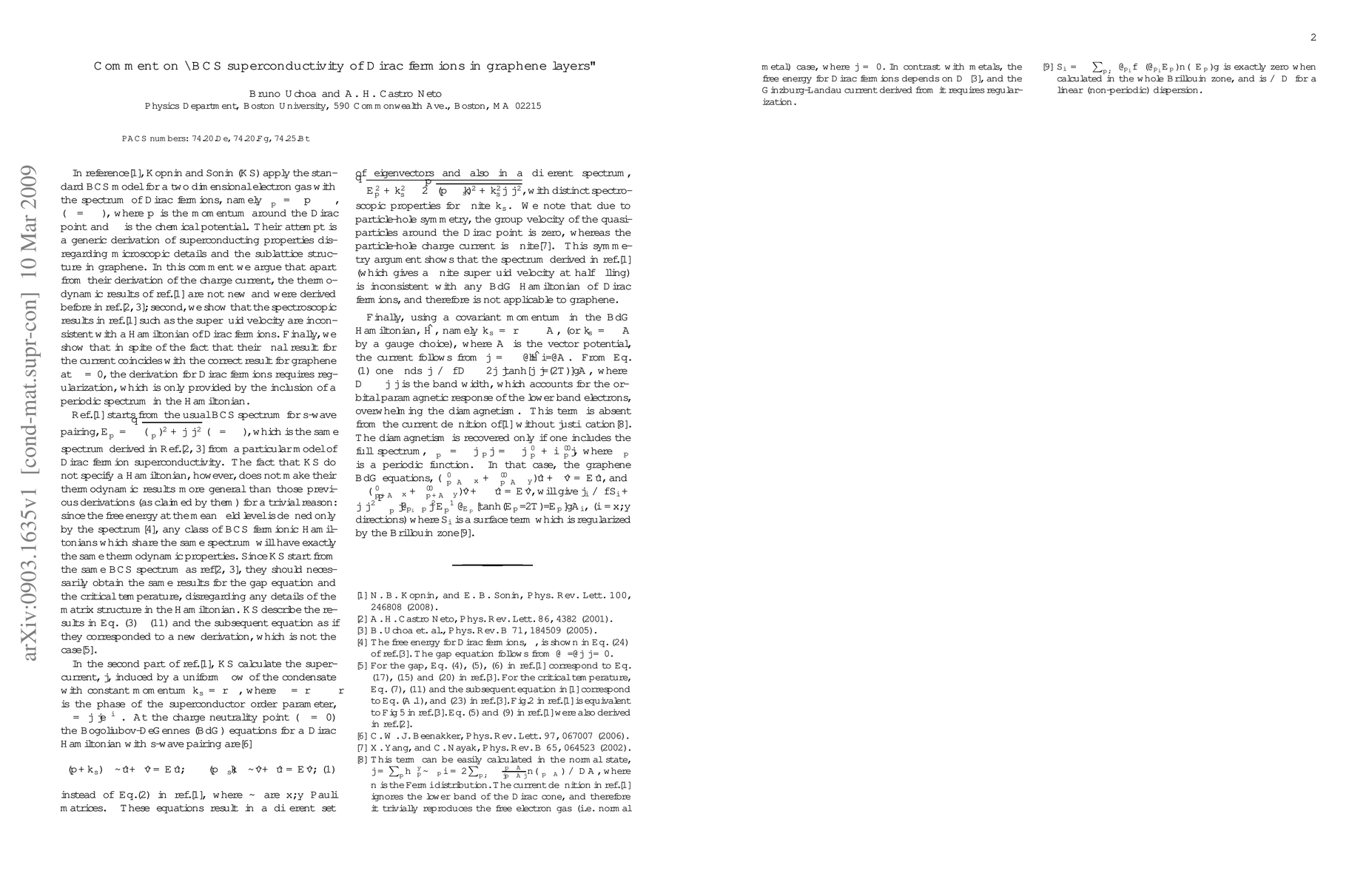 Comment on "BCS superconductivity of Dirac fermions in graphene layers" by N. B. Kopnin and E. B. Sonin [arXiv:0803.3772; Phys. Rev. Lett. 100, 246808 (2008)].