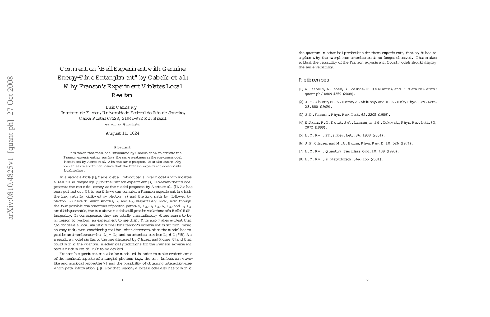 It is shown that the model introduced by Cabello et al. to criticize the Franson experiment suffers from the same weakness as the previous model introduced by Aerts et al. with the same purpose. It is also shown why we can assume with confidence that the Franson experiment does violate local realism.