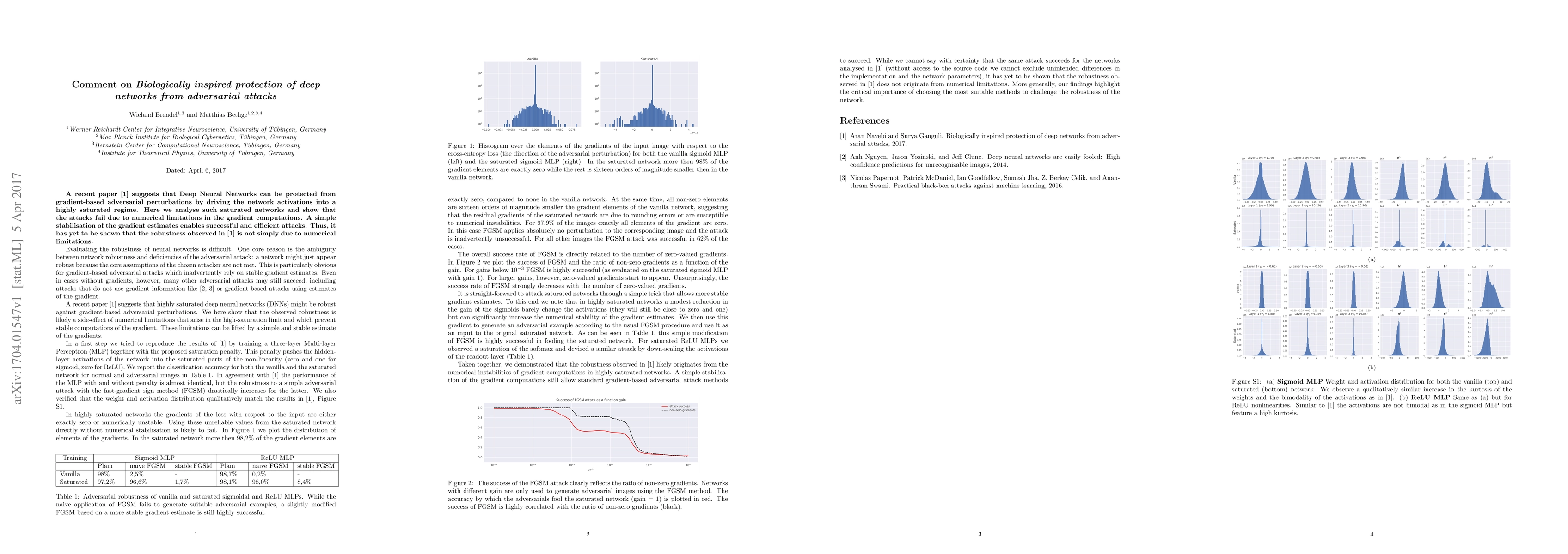 A recent paper suggests that Deep Neural Networks can be protected from gradient-based adversarial perturbations by driving the network activations into a highly saturated regime. Here we analyse such saturated networks and show that the attacks fail due to numerical limitations in the gradient computations. A simple stabilisation of the gradient estimates enables successful and efficient attacks. Thus, it has yet to be shown that the robustness observed in highly saturated networks is not simply due to numerical limitations.