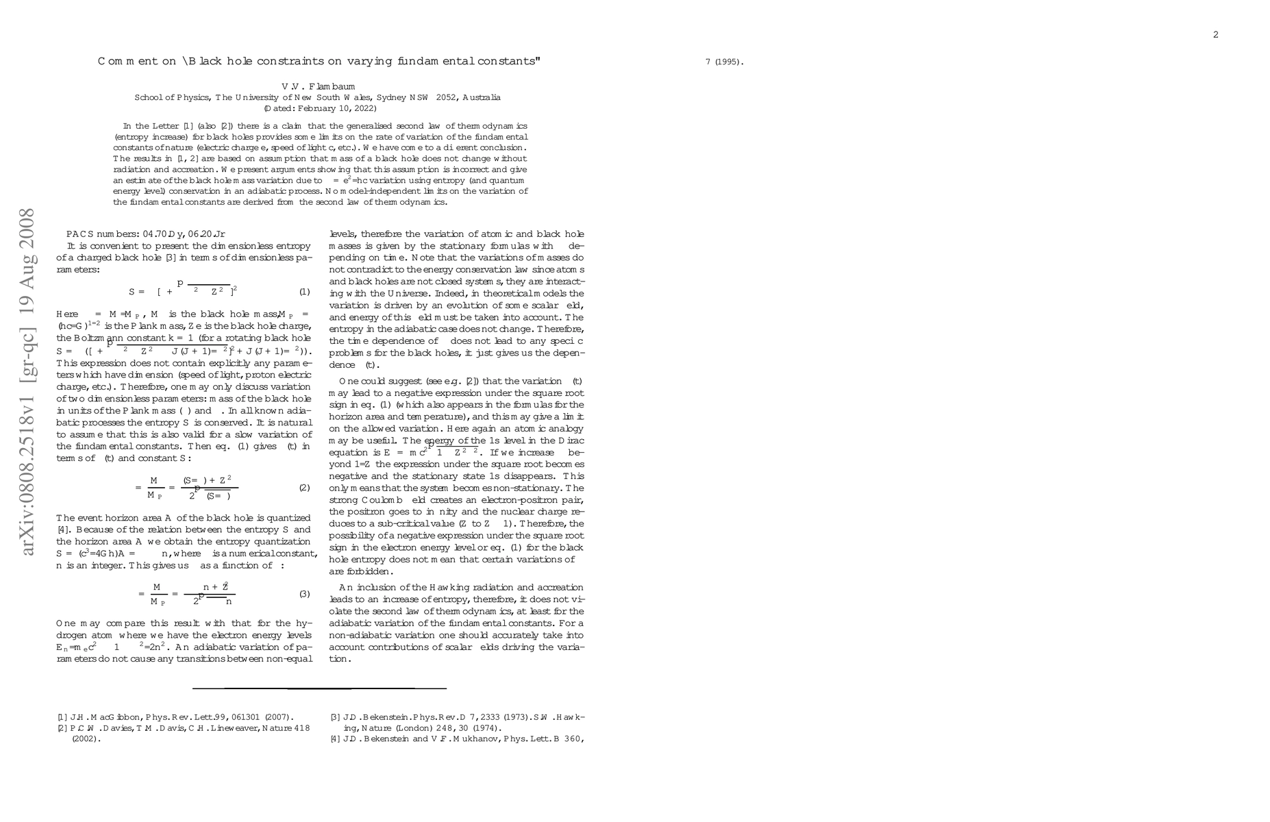 In the Letter [1] (also [2]) there is a claim that the generalised second law of thermodynamics (entropy increase) for black holes provides some limits on the rate of variation of the fundamental constants of nature (electric charge e, speed of light c, etc.). We have come to a different conclusion. The results in [1,2] are based on assumption that mass of a black hole does not change without radiation and accreation. We present arguments showing that this assumption is incorrect and give an estimate of the black hole mass variation due to alpha=e^2/\hbar c variation using entropy (and quantum energy level) conservation in an adiabatic process. No model-independent limits on the variation of the fundamental constants are derived from the second law of thermodynamics.