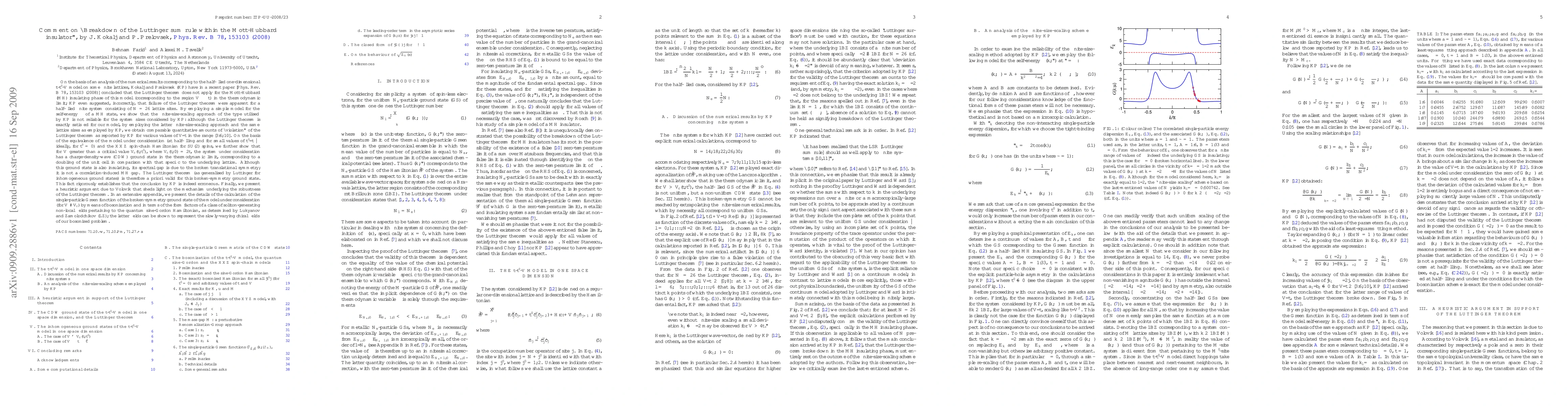 This paper critiques the findings of Kokalj and Prelovsek regarding the breakdown of the Luttinger theorem in the Mott-Hubbard insulating phase of a 1D t-t'-V model, demonstrating that their finite-size scaling approach is unreliable. It argues that the system exhibits a charge-density-wave ground state instead, maintaining the validity of the Luttinger theorem.