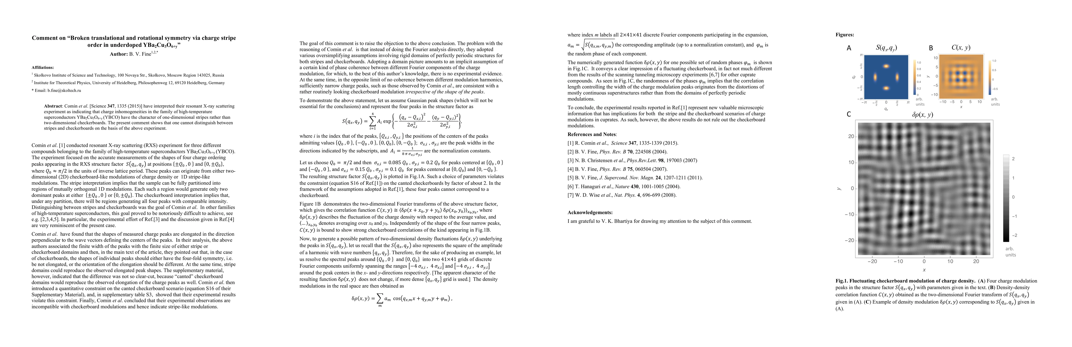 Comin et al. [Science 347, 1335 (2015)] have interpreted their resonant X-ray scattering experiment as indicating that charge inhomogeneities in the family of high-temperature superconductors YBa2Cu3O6+y (YBCO) have the character of one-dimensional stripes rather than two-dimensional checkerboards. The present comment shows that one cannot distinguish between stripes and checkerboards on the basis of the above experiment.