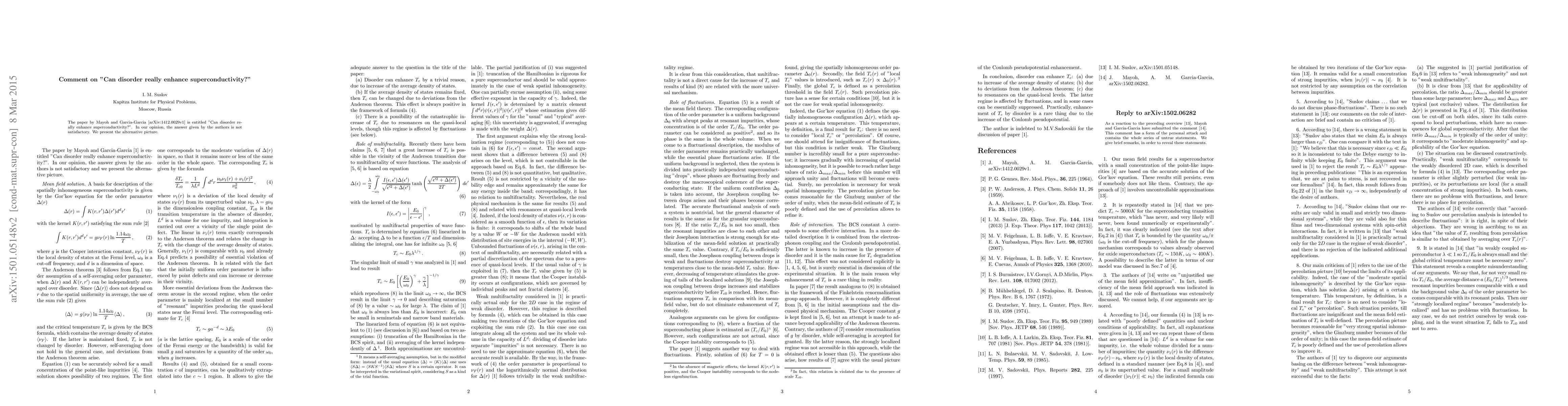 This paper questions whether disorder can enhance superconductivity, presenting an alternative perspective with unsatisfactory results from the original authors.