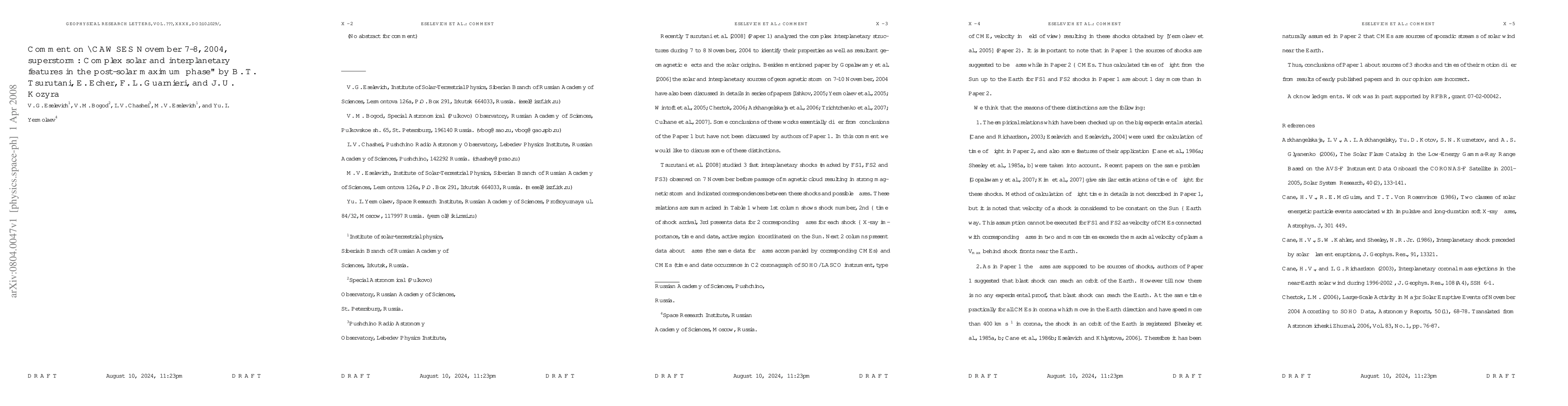 Recently Tsurutani et al., (2008) (Paper 1) analyzed the complex interplanetary structures during 7 to 8 November, 2004 to identify their properties as well as resultant geomagnetic effects and the solar origins. Besides mentioned paper by Gopalswamy et al., (2006) the solar and interplanetary sources of geomagnetic storm on 7-10 November, 2004 have also been discussed in details in series of other papers. Some conclusions of these works essentially differ from conclusions of the Paper 1 but have not been discussed by authors of Paper 1. In this comment we would like to discuss some of these distinctions.