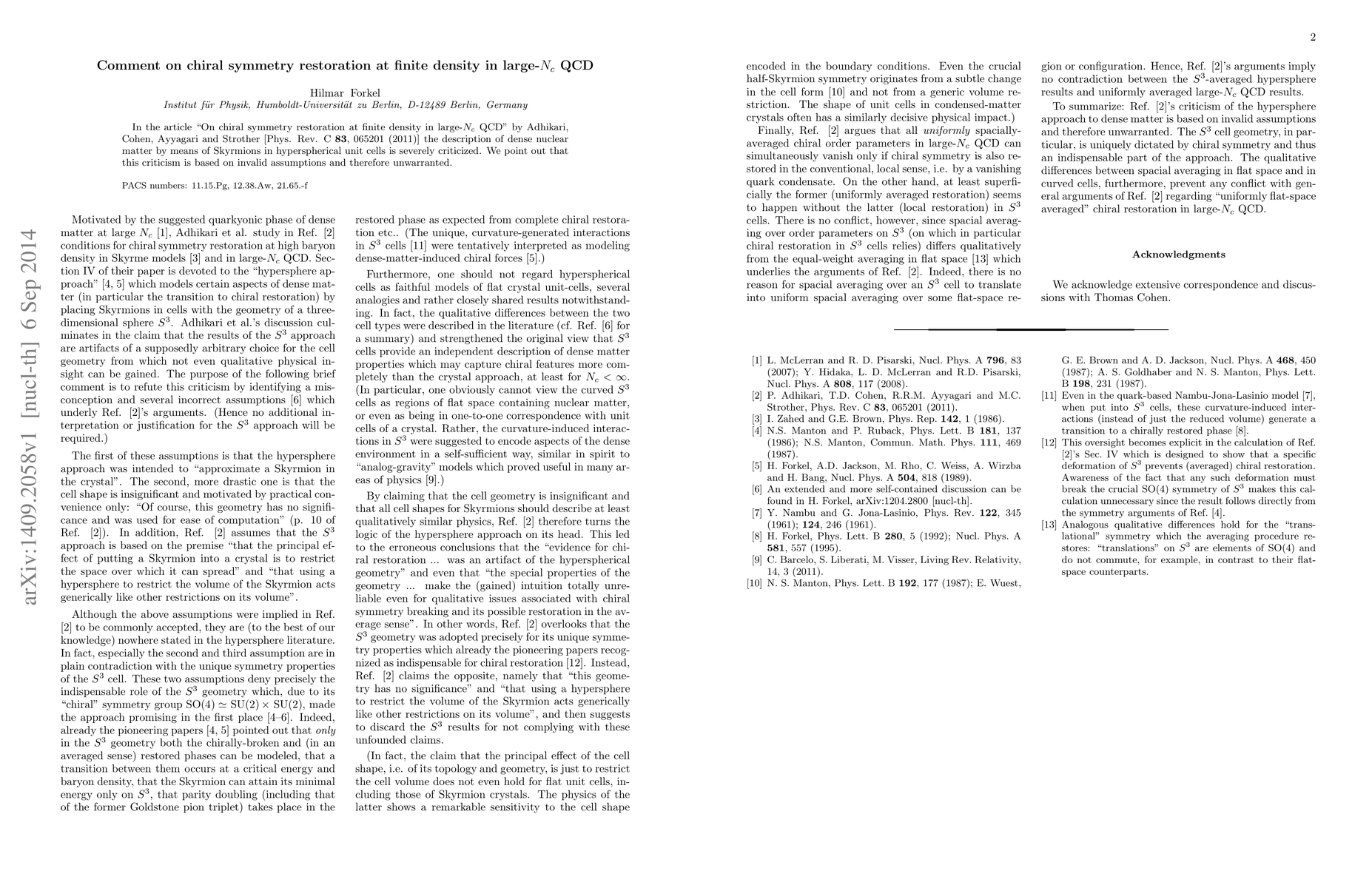 In the article "On chiral symmetry restoration at finite density in large-$N_c$ QCD" by Adhikari, Cohen, Ayyagari and Strother [Phys. Rev. C 83, 065201 (2011)] the description of dense nuclear matter by means of Skyrmions in hyperspherical unit cells is severely criticized. We point out that this criticism is based on invalid assumptions and therefore unwarranted.