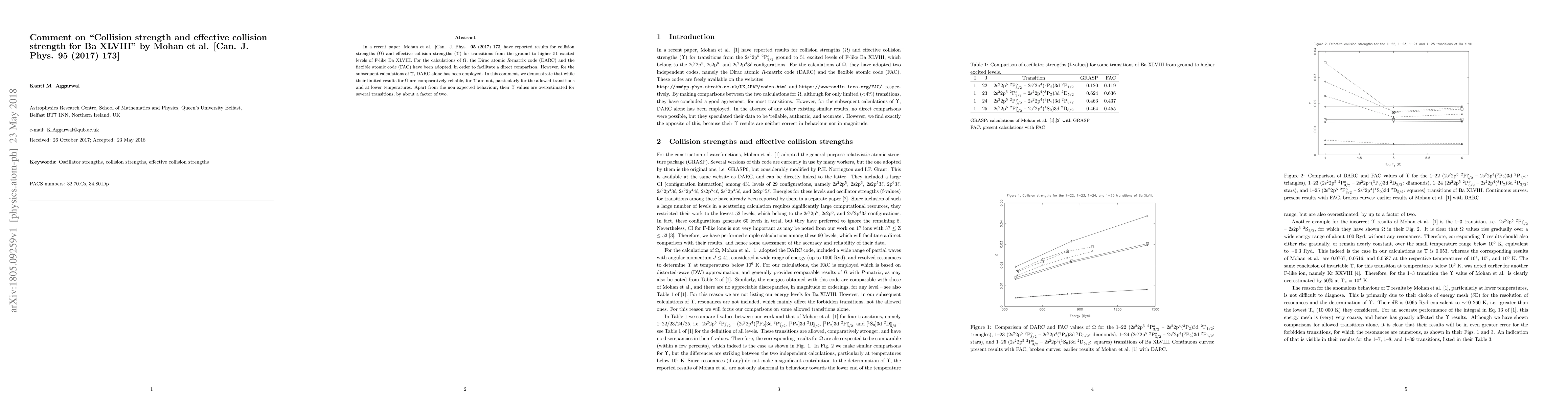 In a recent paper, Mohan et al. [Can. J. Phys. {\bf 95} (2017) 173] have reported results for collision strengths ($\Omega$) and effective collision strengths ($\Upsilon$) for transitions from the ground to higher 51 excited levels of F-like Ba~XLVIII. For the calculations of $\Omega$, the Dirac atomic $R$-matrix code (DARC) and the flexible atomic code (FAC) have been adopted, in order to facilitate a direct comparison. However, for the subsequent calculations of $\Upsilon$, DARC alone has been employed. In this comment, we demonstrate that while their limited results for $\Omega$ are comparatively reliable, for $\Upsilon$ are not, particularly for the allowed transitions and at lower temperatures. Apart from the non expected behaviour, their $\Upsilon$ values are overestimated for several transitions, by about a factor of two.