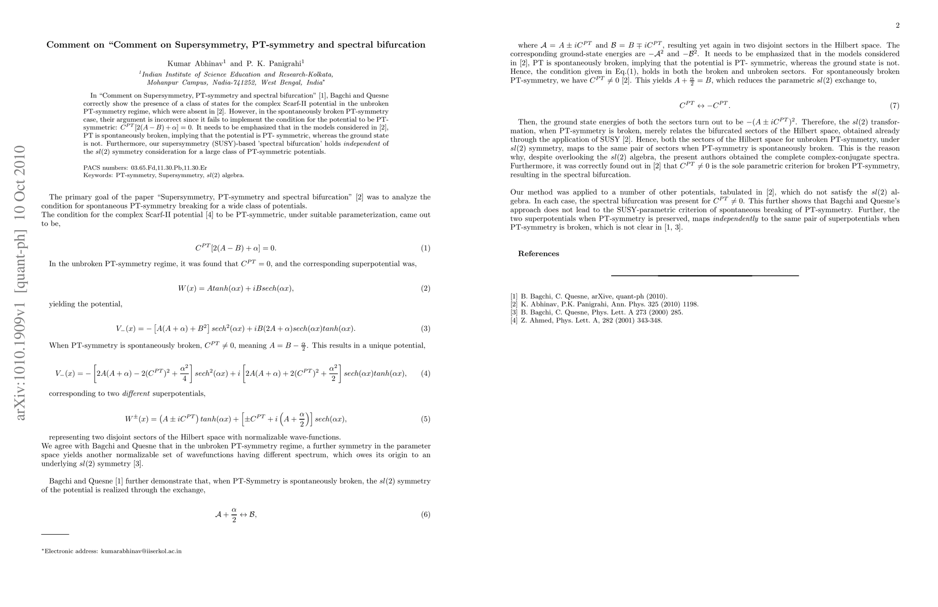 This paper critiques Bagchi and Quesne's analysis of the complex Scarf-II potential, affirming their findings in the unbroken PT-symmetry regime but disputing their conclusions in the spontaneously broken PT-symmetry case due to a failure to meet the PT-symmetry condition. It emphasizes that PT symmetry is spontaneously broken in the models considered, and highlights the independence of the authors' supersymmetry-based spectral bifurcation from $sl(2)$ symmetry considerations.