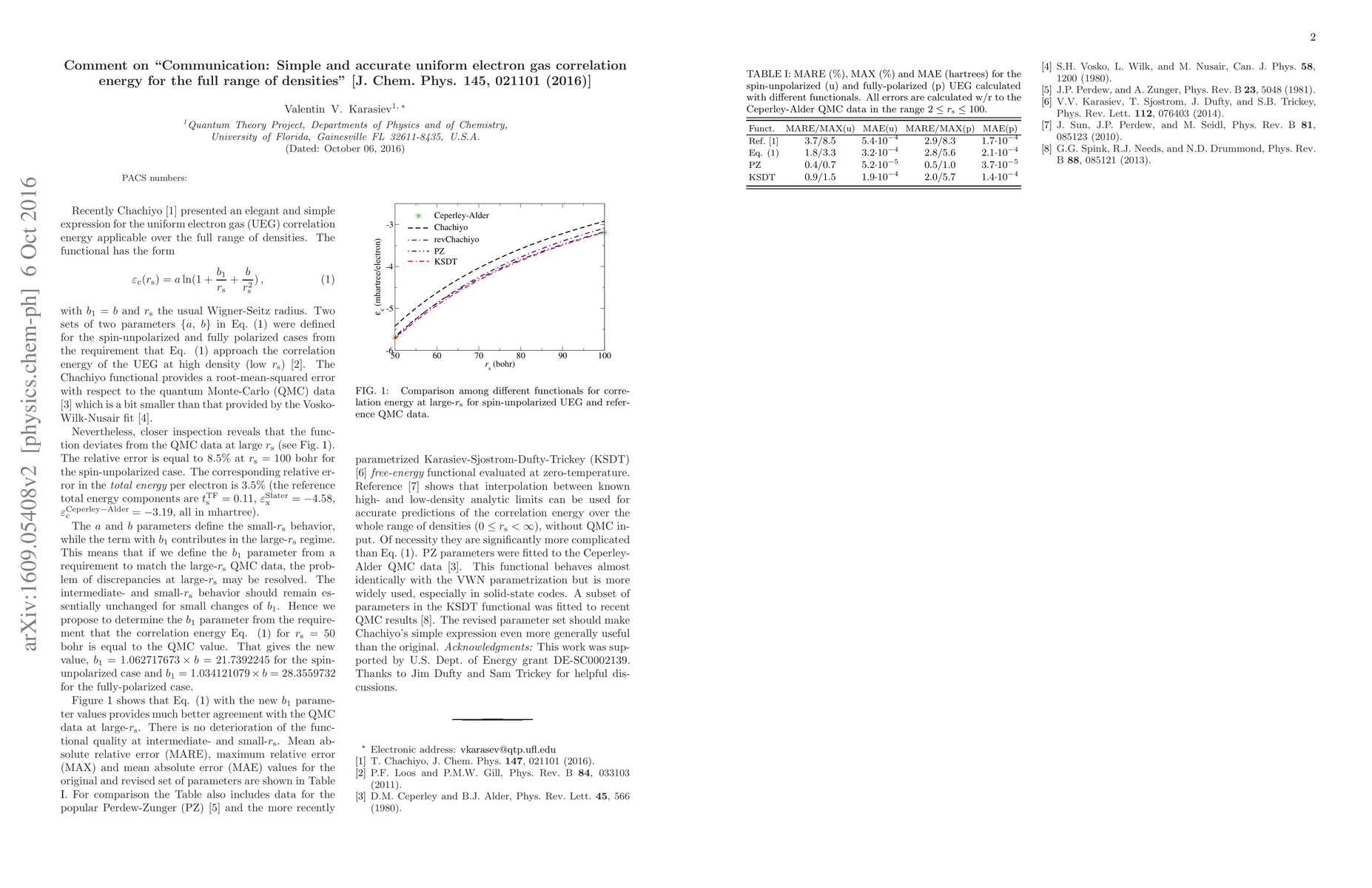 A simple expression for the uniform electron gas (UEG) correlation energy, recently presented in Ref. [J. Chem. Phys. 145, 021101 (2016)], deviates from the reference quantum Monte-Carlo (QMC) data at large r_s. We propose to define one of the parameters from a requirement to match the large-rs QMC data. Functional with the new parameter provides much better agreement with the QMC data at large r_s without deterioration of the functional quality at small and intermediate r_s.