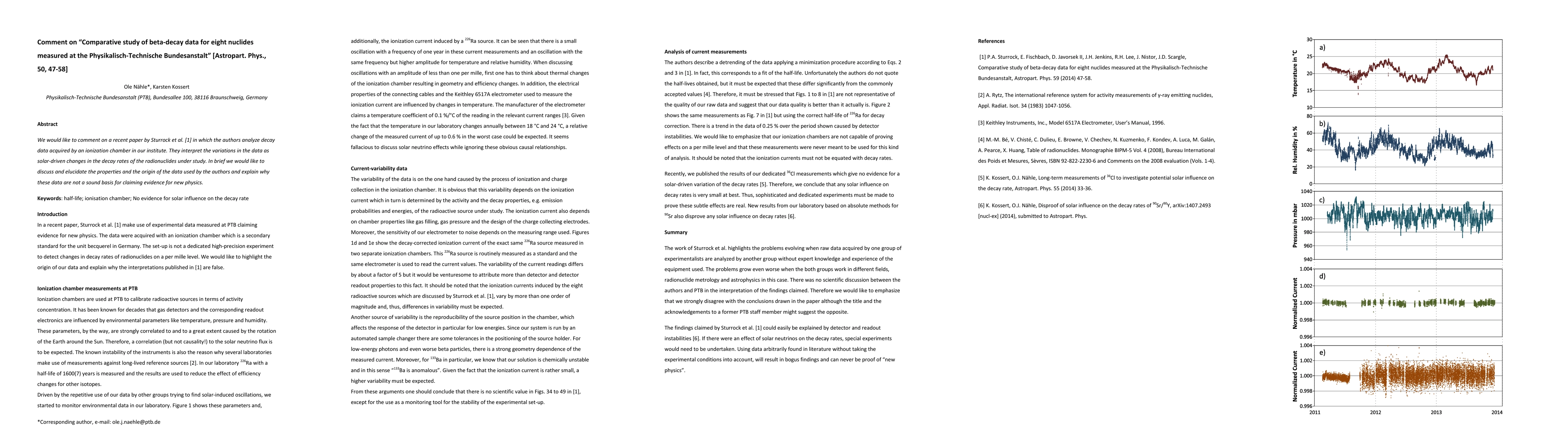 We would like to comment on a recent paper by Sturrock et al. [1] in which the authors analyze decay data acquired by an ionization chamber in our institute. They interpret the variations in the data as solar-driven changes in the decay rates of the radionuclides under study. In brief we would like to discuss and elucidate the properties and the origin of the data used by the authors and explain why these data are not a sound basis for claiming evidence for new physics.