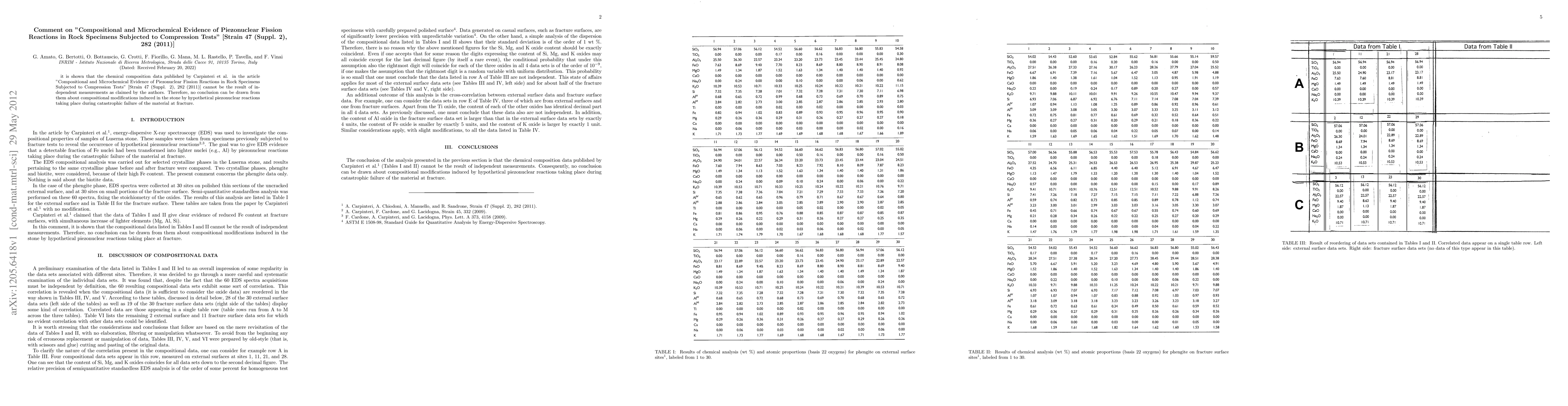 This paper critiques Carpinteri et al.'s claim of piezonuclear fission in compressed rock, arguing that the compositional data cannot be independently verified, thus invalidating conclusions about compositional changes due to such reactions.