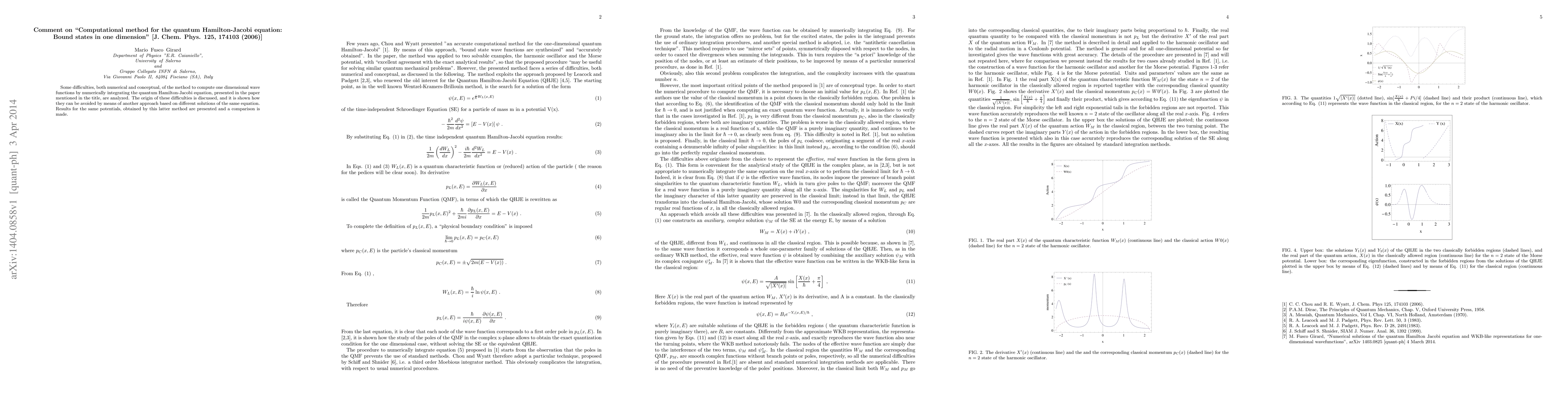 This comment critiques a method for computing one-dimensional quantum wave functions via numerical integration of the Hamilton-Jacobi equation, highlighting numerical and conceptual difficulties. It proposes an alternative approach yielding equivalent results, thus offering a solution to bypass these issues.