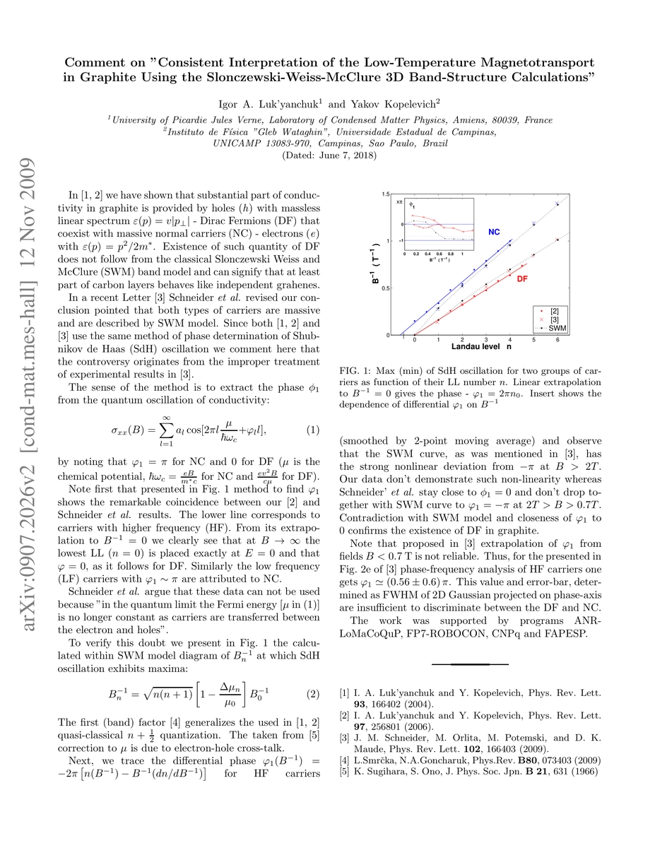 In 2004 we have shown that substantial part of conductivity in graphite is provided by holes with massless linear spectrum - Dirac Fermions that coexist with massive normal carriers - electrons. In a recent Letter [Phys. Rev. Lett. 102, 166403 (2009), arXiv:0902.1925] Schneider et al. revised our conclusion pointed that both types of carriers are massive. Since both groups use the same method of phase determination of Shubnikov de Haas oscillation we comment here that the controversy originates from the improper treatment of experimental results in Schneider2009 et al.