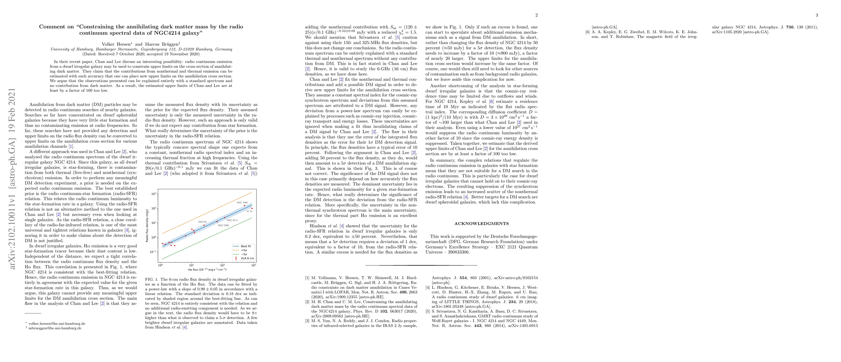 This paper critiques Chan and Lee's assertion that radio continuum emission from NGC4214 can constrain dark matter annihilation cross sections, arguing that the observed data can be fully explained by standard astrophysical processes without dark matter contributions, thus rendering their estimated upper limits on the annihilation cross section significantly underestimated.