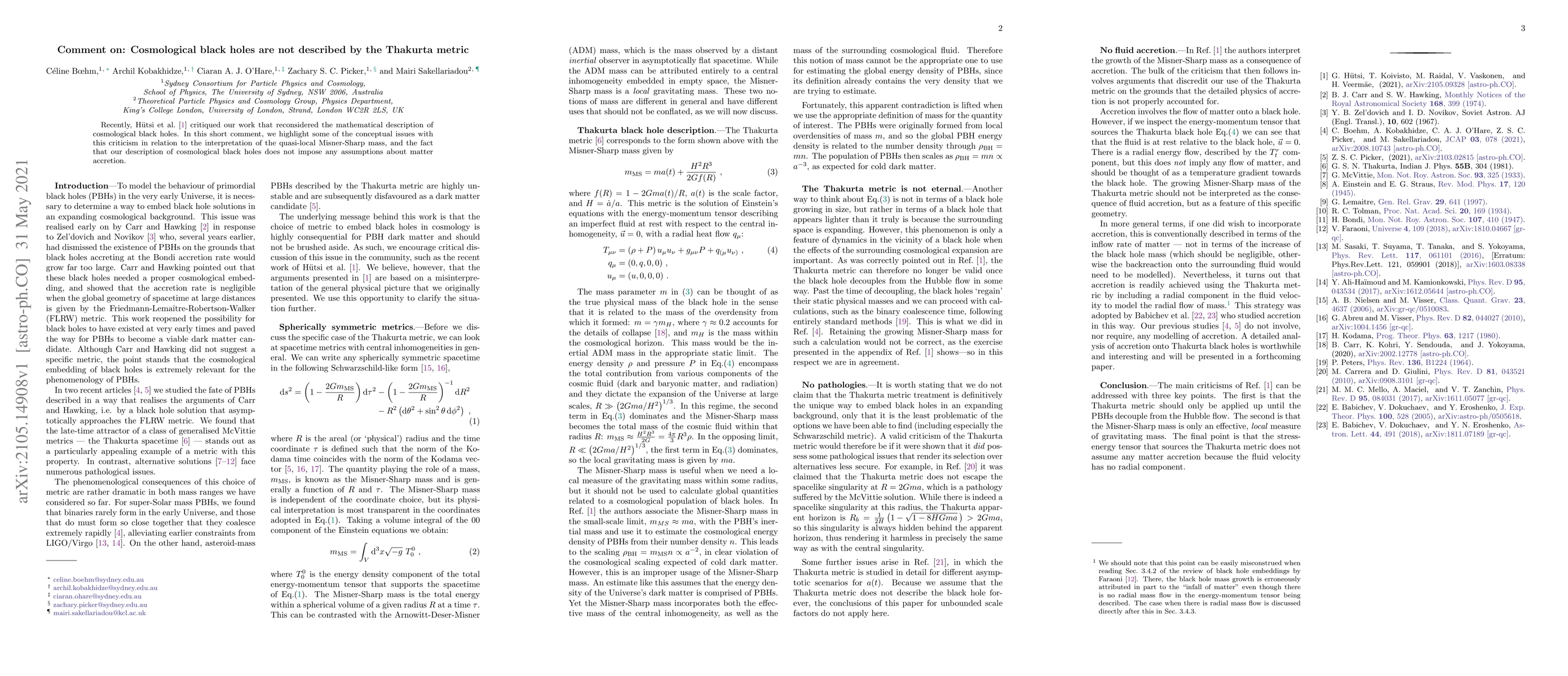 A response to criticism of a cosmological black hole model that highlights conceptual issues with the criticism and emphasizes the model's lack of assumptions about matter accretion.