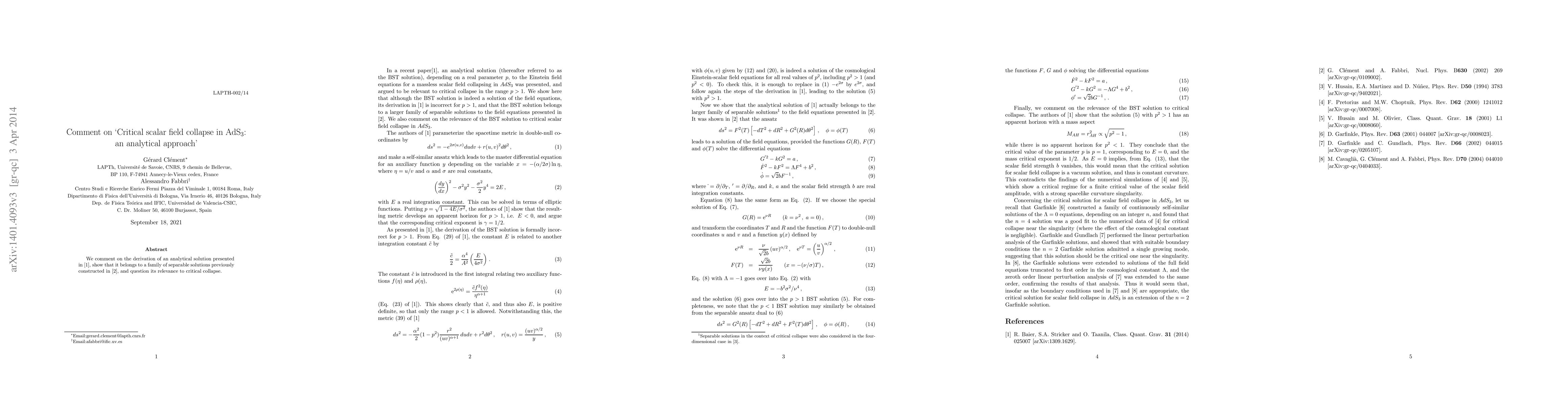 We comment on the derivation of an analytical solution presented in arXiv:1309.1629, show that it belongs to a family of separable solutions previously constructed in arXiv:gr-qc/0109002, and question its relevance to critical collapse.