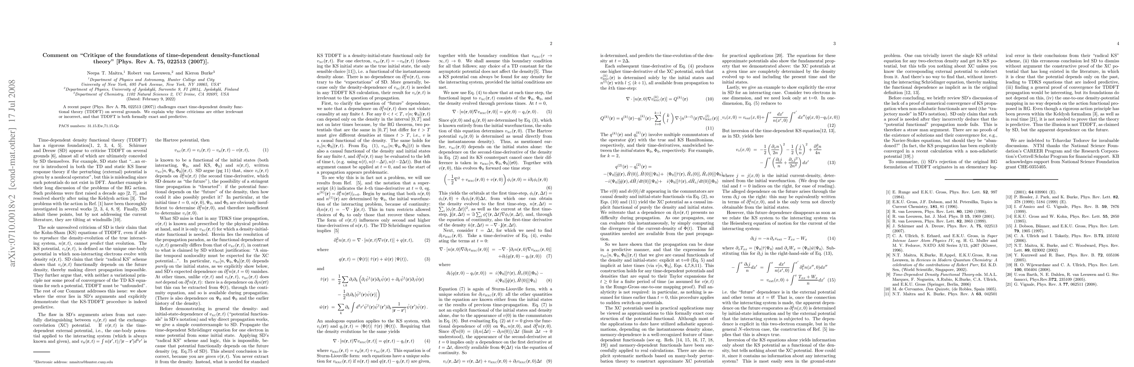 A recent paper (Phys. Rev A. 75, 022513 (2007), arXiv:cond-mat/0602020) challenges exact time-dependent density functional theory (TDDFT) on several grounds. We explain why these criticisms are either irrelevant or incorrect, and that TDDFT is both formally exact and predictive.