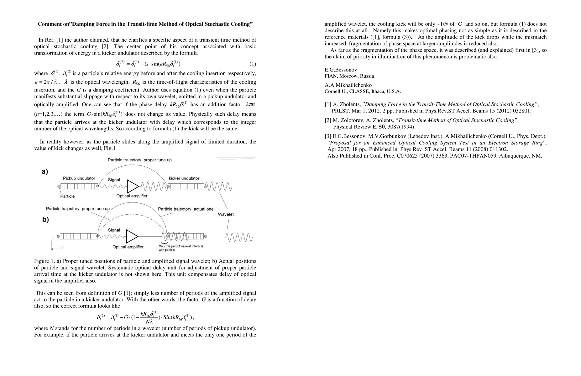 In this brief report we pointed at mistake in paper A. Zholents, Damping Force in the Transit-Time Method of Optical Stochastic Cooling, PRLST. Mar 1, 2012. 2 pp. Published in Phys.Rev.ST Accel. Beams 15 (2012) 032801.