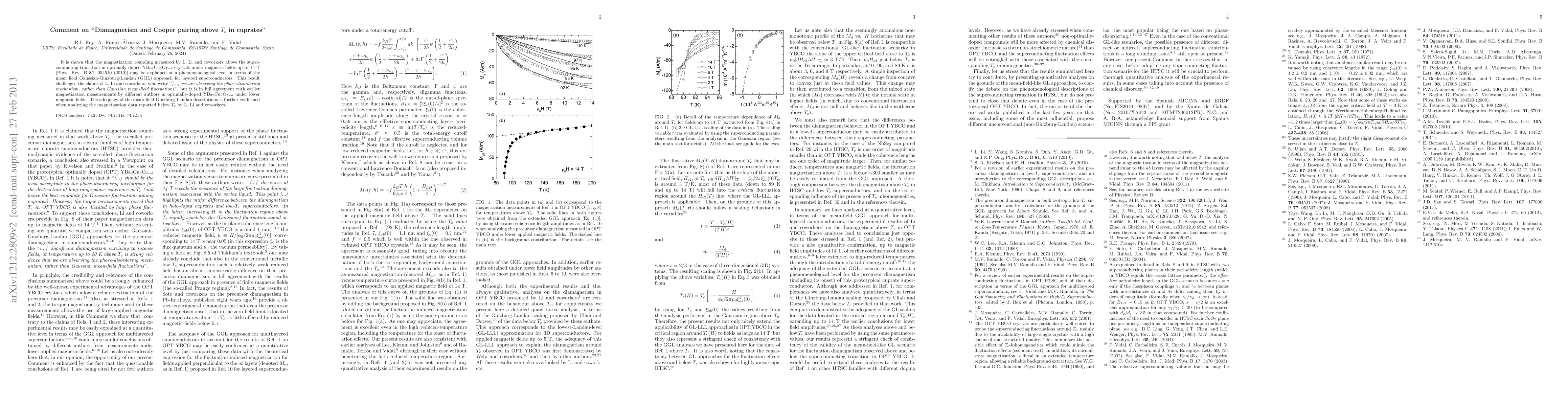 It is shown that the magnetization rounding measured by L. Li and coworkers above the superconducting transition in optimally doped YBa2Cu3O7-d crystals under magnetic fields up to 14 T [Phys. Rev. B 81, 054510 (2010), arXiv:0906.1823] may be explained at a phenomenological level in terms of the mean field Gaussian-Ginzburg-Landau (GGL) approach for layered superconductors. This result challenges the claims of L. Li and coworkers, who write '[...] we are observing the phase-disordering mechanism, rather than Gaussian mean-field fluctuations', but it is in full agreement with earlier magnetization measurements by different authors in optimally-doped YBa2Cu3O7-d under lower magnetic fields. The adequacy of the mean-field Ginzburg-Landau descriptions is further confirmed when analyzing in terms of the GL scaling in the lowest-Landau-level (GL-LLL) approximation the magnetization data reported below Tc by L. Li and coworkers.