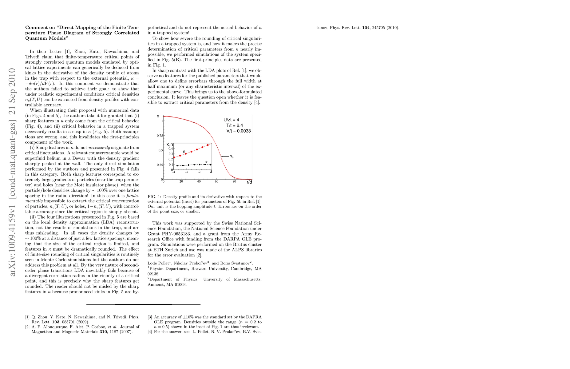 This comment critiques Zhou et al.'s assertion that critical points in strongly correlated quantum models can be identified via kinks in the derivative of the density profile. The critique argues that the authors did not successfully demonstrate how critical densities can be accurately extracted from density profiles under realistic experimental conditions.