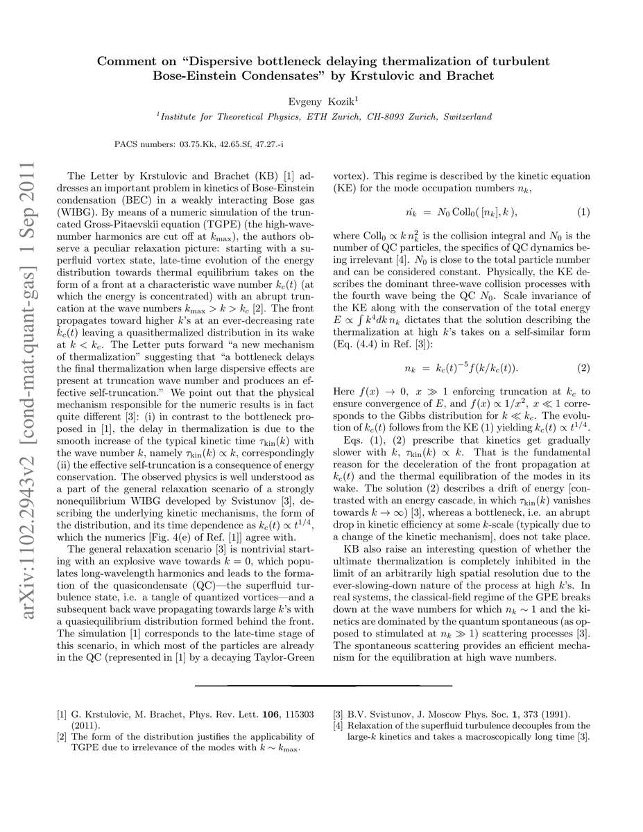 We reveal the connection of the recent numerical observations of Krstulovic and Brachet [arXiv:1007.4441] with the general theory of relaxation kinetics of the strongly non-equilibrium Bose-Einstein condensates.