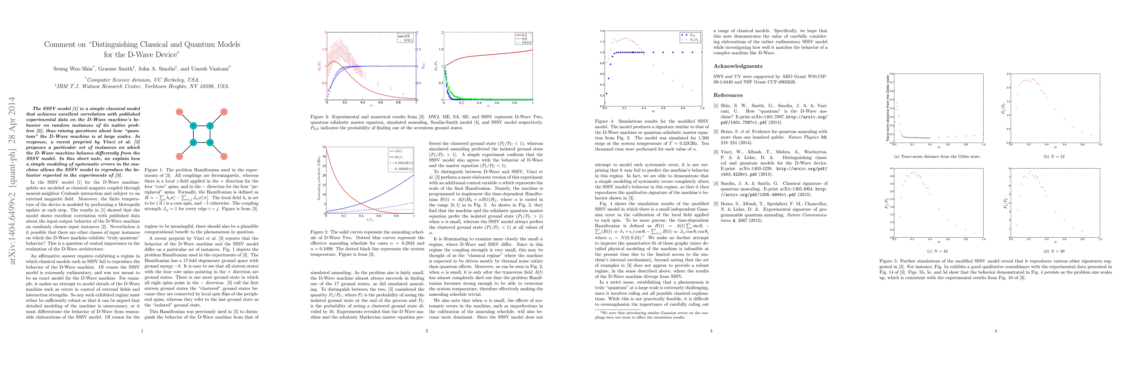 The SSSV model is a simple classical model that achieves excellent correlation with published experimental data on the D-Wave machine's behavior on random instances of its native problem, thus raising questions about how "quantum" the D-Wave machine is at large scales. In response, a recent preprint by Vinci et al. proposes a particular set of instances on which the D-Wave machine behaves differently from the SSSV model. In this short note, we explain how a simple modeling of systematic errors in the machine allows the SSSV model to reproduce the behavior reported in the experiments of Vinci et al.