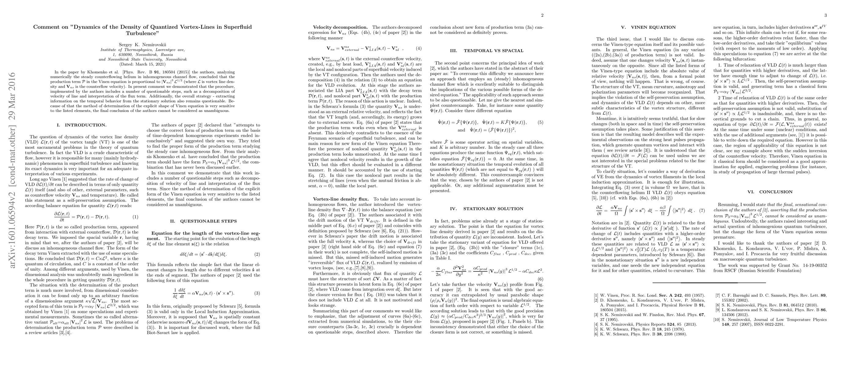 This paper challenges a previous study on superfluid turbulence by highlighting methodological flaws and questioning its conclusions, particularly the relationship between velocity and vortex line density in the Vinen equation.