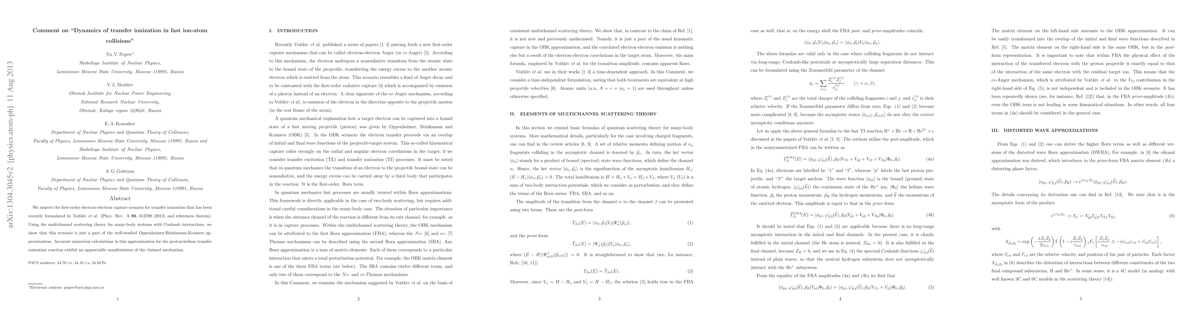 We inspect the first-order electron-electron capture scenario for transfer ionization that has been recently formulated by Voitkiv et al. (Phys. Rev. A 86, 012709 (2012) and references therein). Using the multichannel scattering theory for many-body systems with Coulomb interactions, we show that this scenario is just a part of the well-studied Oppenheimer-Brinkmann-Kramers approximation. Accurate numerical calculations in this approximation for the proton-helium transfer ionization reaction exhibit no appreciable manifestation of the claimed mechanism.