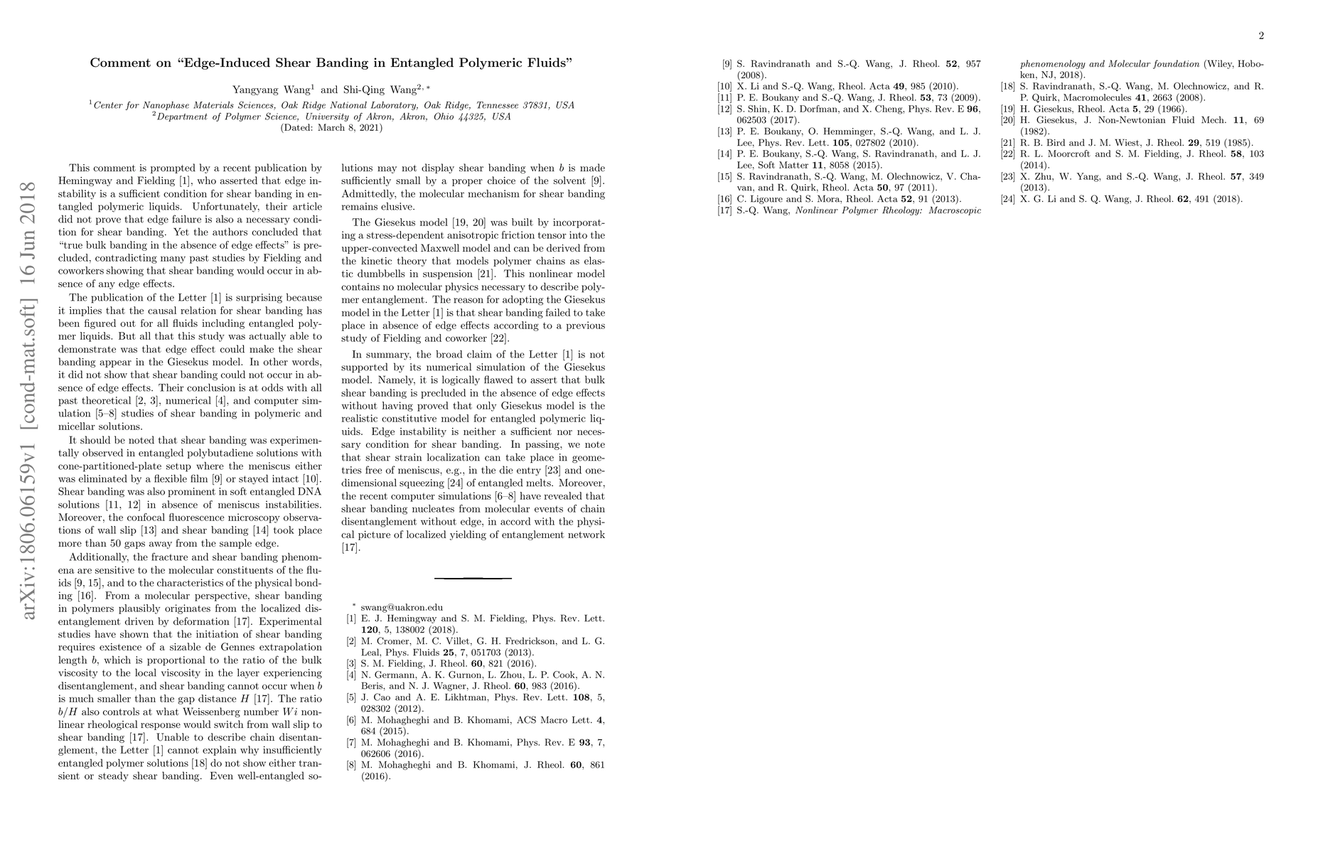 Based on numerical modeling with the diffusive Giesekus constitutive equation, a recent Letter [Phys. Rev. Lett. 120, 138002 (2018), arXiv:1801.08798] claimed that the experimental reports of shear banding in entangled polymeric fluids were due to the disturbances from the sample edge. The conclusion that true bulk shear banding is precluded in the presence of edge effects is at odds with many past experimental, theoretical, numerical, and computer simulation studies. We briefly discuss some problems of this work.