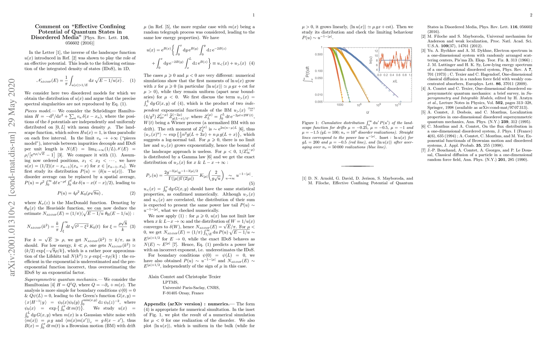 We provide some analytical tests of the density of states estimation from the "localization landscape" approach of Ref. [Phys. Rev. Lett. 116, 056602 (2016)]. We consider two different solvable models for which we obtain the distribution of the landscape function and argue that the precise spectral singularities are not reproduced by the estimation of the landscape approach.