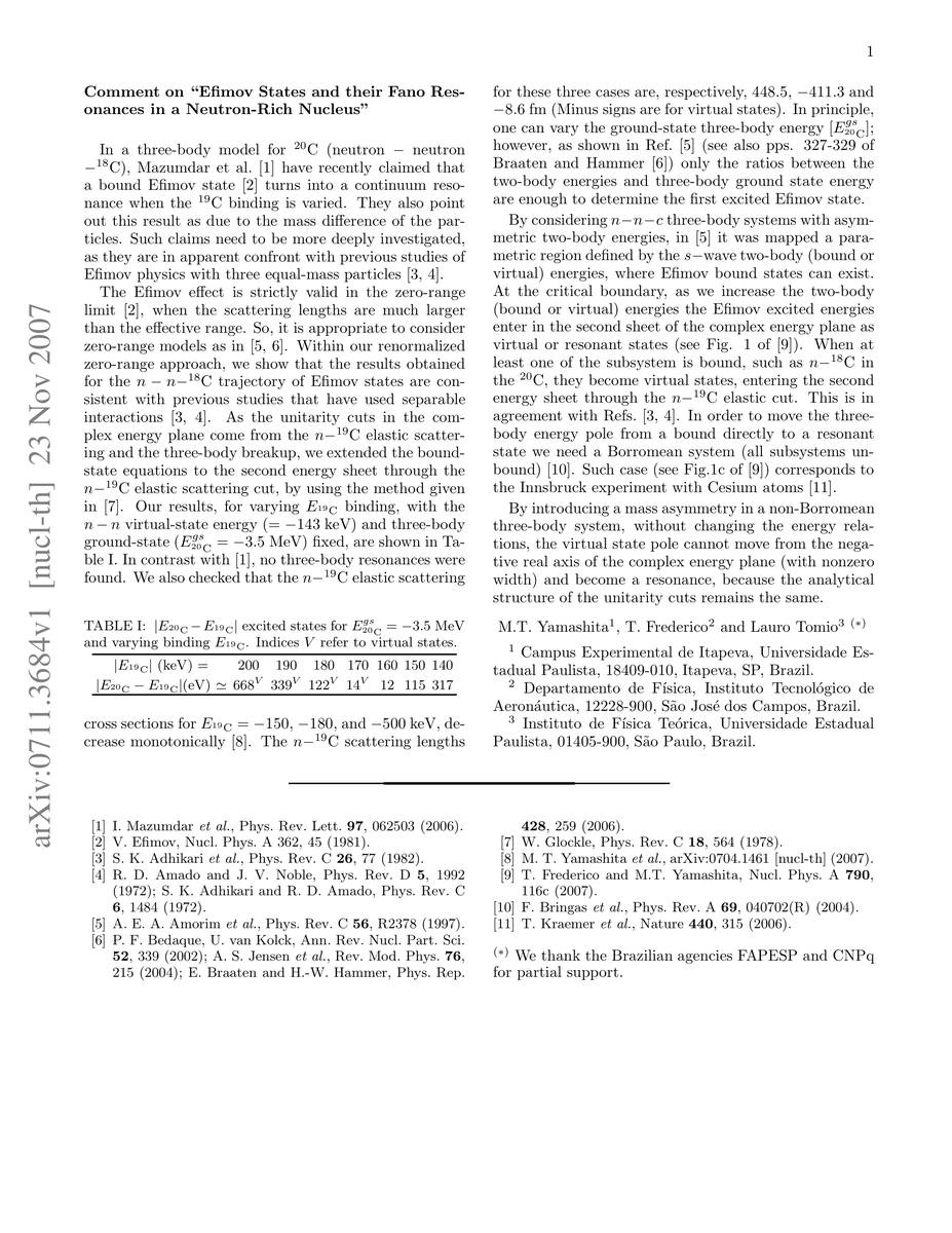 By introducing a mass asymmetry in a non-Borromean three-body system, without changing the energy relations, the virtual state pole cannot move from the negative real axis of the complex energy plane (with nonzero width) and become a resonance, because the analytical structure of the unitarity cuts remains the same.