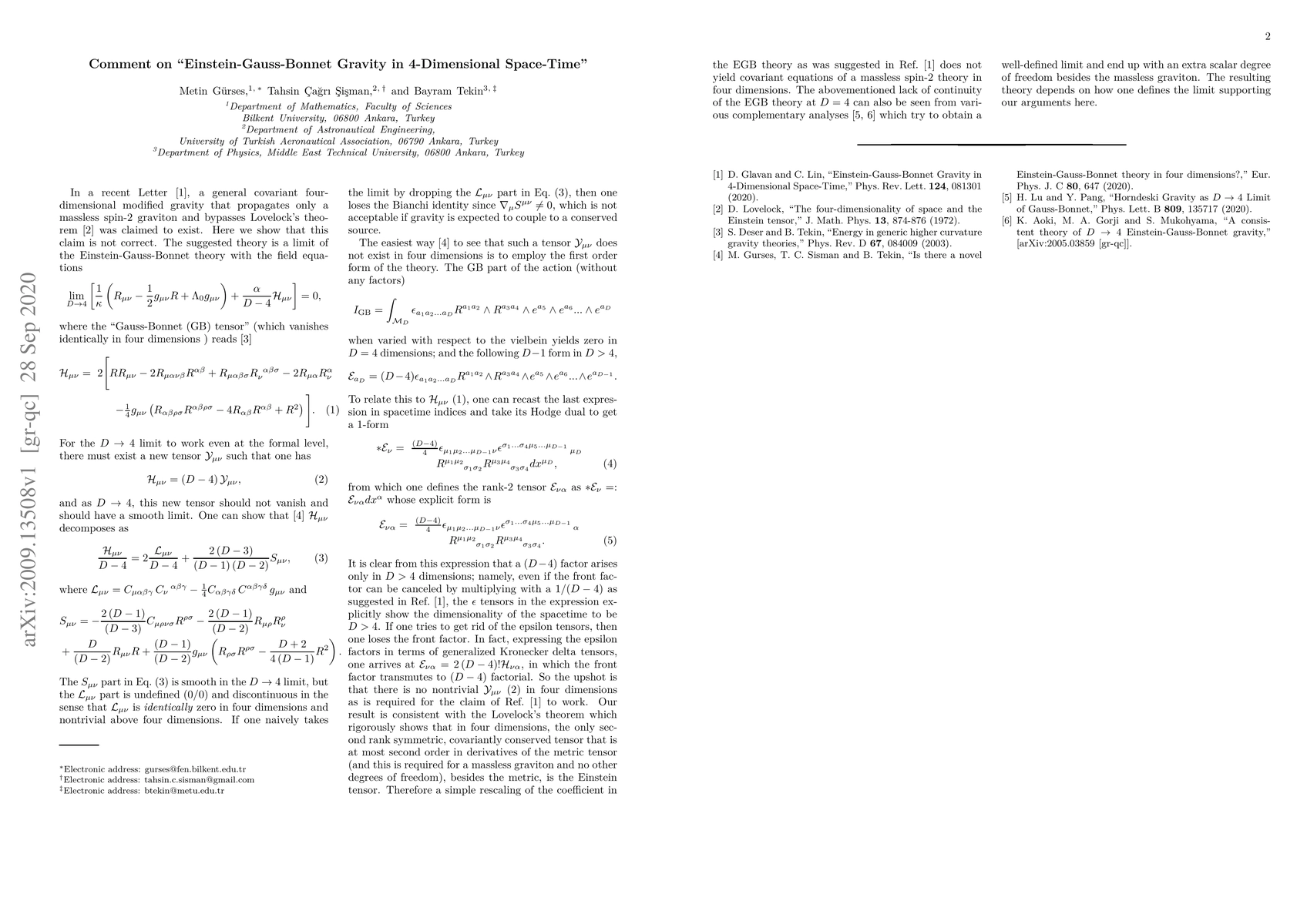 We summarize our proof that the "Einstein-Gauss-Bonnet Gravity in Four-Dimensional Spacetime" introduced in Phys. Rev. Lett. 124, 081301 (2020) does not have consistent field equations, as such the theory does not exist. The proof is given in both the metric and the first order formalisms.