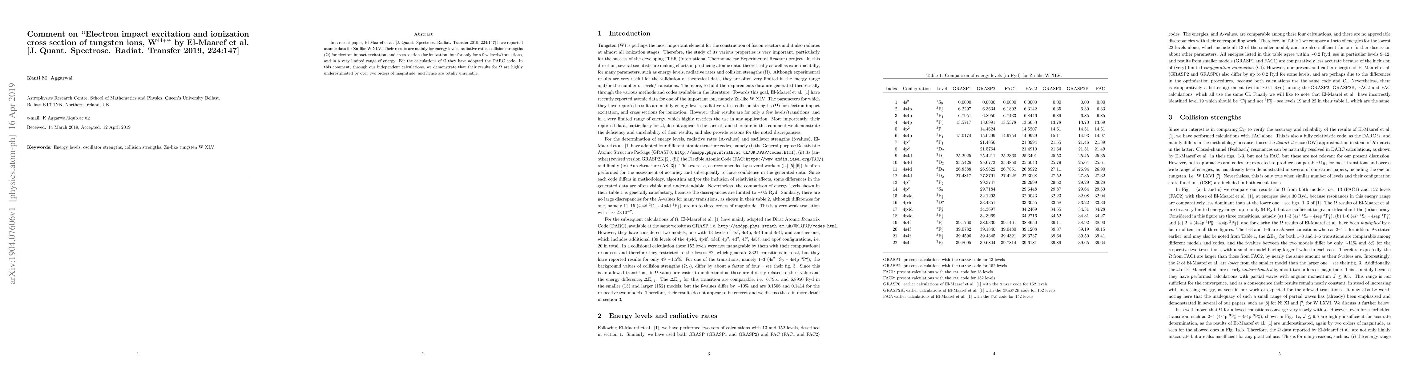 In a recent paper, El-Maaref et al. [J. Quant. Spectrosc. Radiat. Transfer 2019, 224:147] have reported atomic data for Zn-like W~XLV. Their results are mainly for energy levels, radiative rates, collision strengths ($\Omega$) for electron impact excitation, and cross sections for ionization, but for only for a few levels/transitions, and in a very limited range of energy. For the calculations of $\Omega$ they have adopted the DARC code. In this comment, through our independent calculations, we demonstrate that their results for $\Omega$ are highly underestimated by over two orders of magnitude, and hence are totally unreliable.