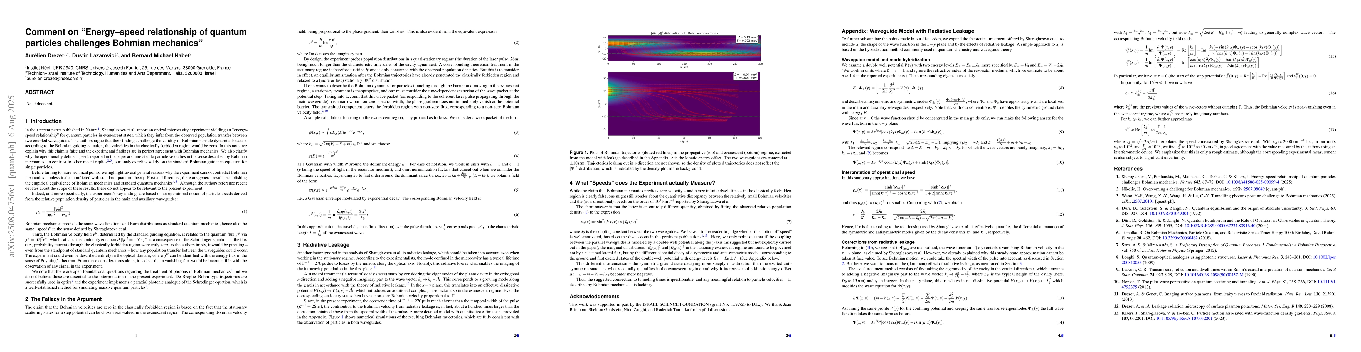 In their recent paper [Nature 643, 67 (2025)], Sharaglazova et al. report an optical microcavity experiment yielding an "energy-speed relationship" for quantum particles in evanescent states, which they infer from the observed population transfer between two coupled waveguides. The authors argue that their findings challenge the validity of Bohmian particle dynamics because, according to the Bohmian guiding equation, the velocities in the classically forbidden region would be zero. In this note, we explain why this claim is false and the experimental findings are in perfect agreement with Bohmian mechanics. We also clarify why the operationally defined speeds reported in the paper are unrelated to particle velocities in the sense described by Bohmian mechanics. In contrast to other recent replies, our analysis relies solely on the standard Bohmian guidance equation for single particles.
