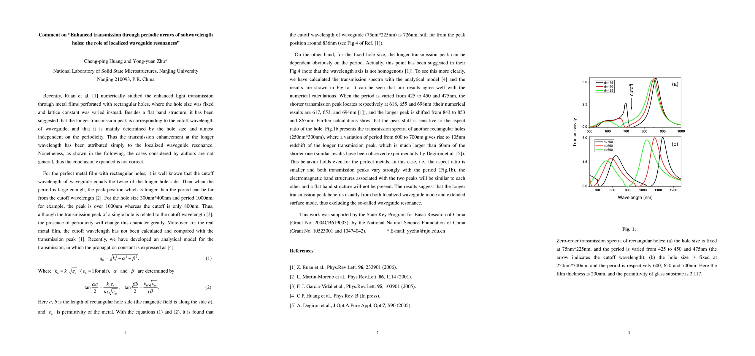 Comment on "Enhanced transmission through periodic arrays of subwavelength holes: the role of localized waveguide resonances" [Phys.Rev.Lett. 96, 233901 (2006)]