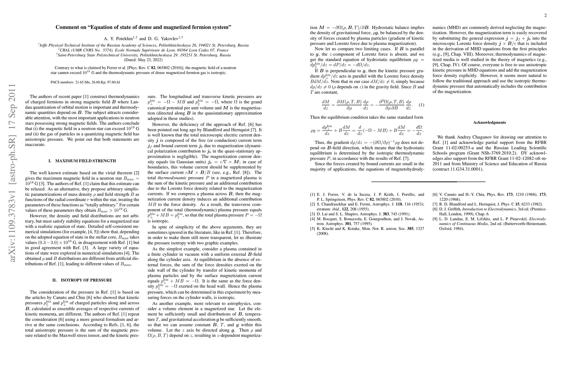 Summary: This paper refutes Ferrer et al.'s claim that neutron star magnetic fields can exceed 10^19 G, asserting instead that such fields are limited and that the thermodynamic pressure in dense magnetized fermion systems remains isotropic.