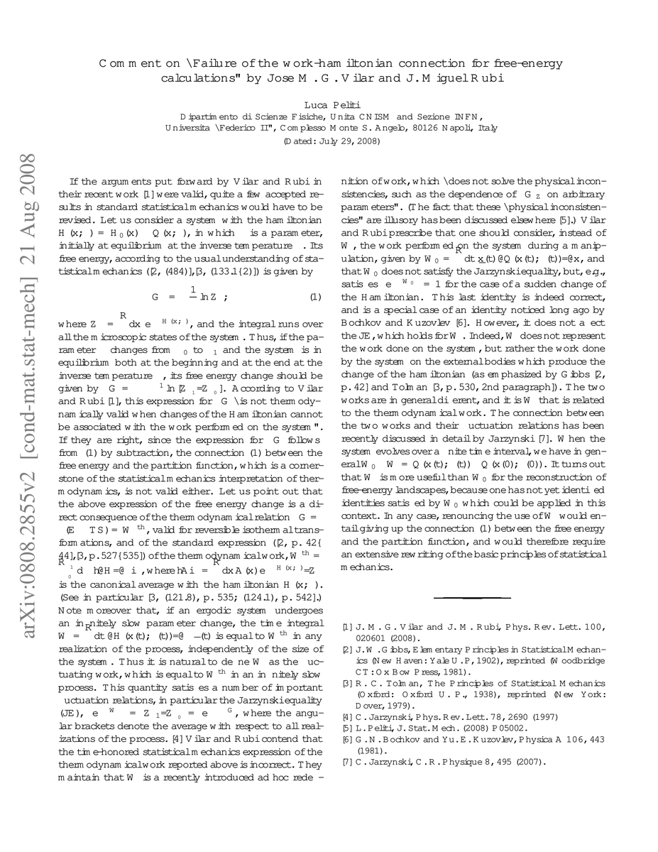 I point out that the arguments raised by Vilar and Rubi against the work-Hamiltonian connection in free-energy calculations imply, if correct, the failure of the statistical mechanical expression of the thermodynamical free-energy via the logarithm of the partition function.
