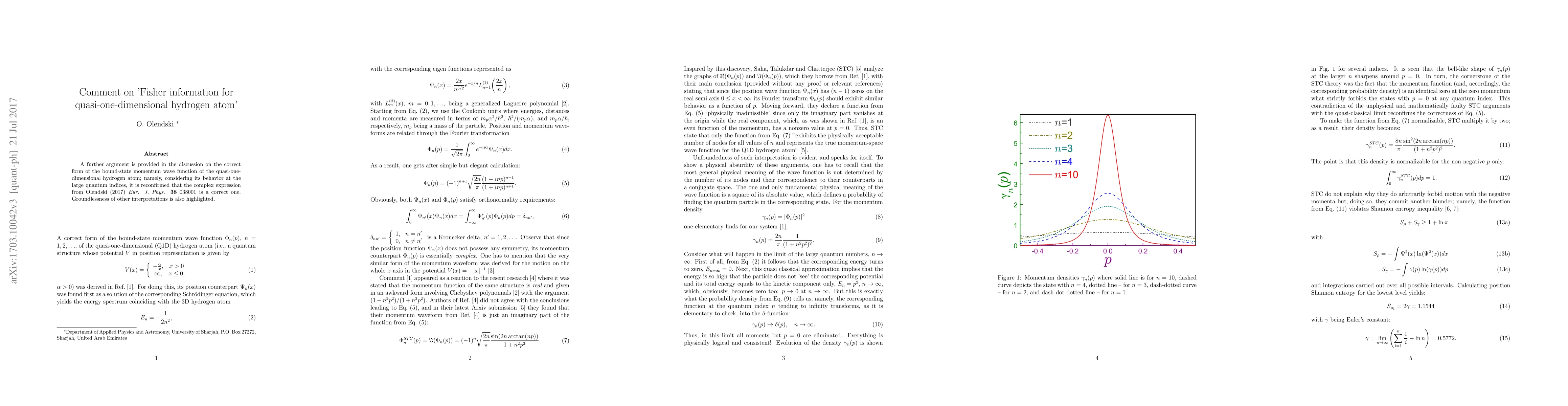 A further argument is provided in the discussion on the correct form of the bound-state momentum wave function of the quasi-one-dimensional hydrogen atom; namely, considering its behavior at the large quantum indices, it is reconfirmed that the complex expression from Olendski (2017) {\it Eur. J. Phys.} {\bf 38} 038001 is a correct one. Groundlessness of other interpretations is also highlighted.