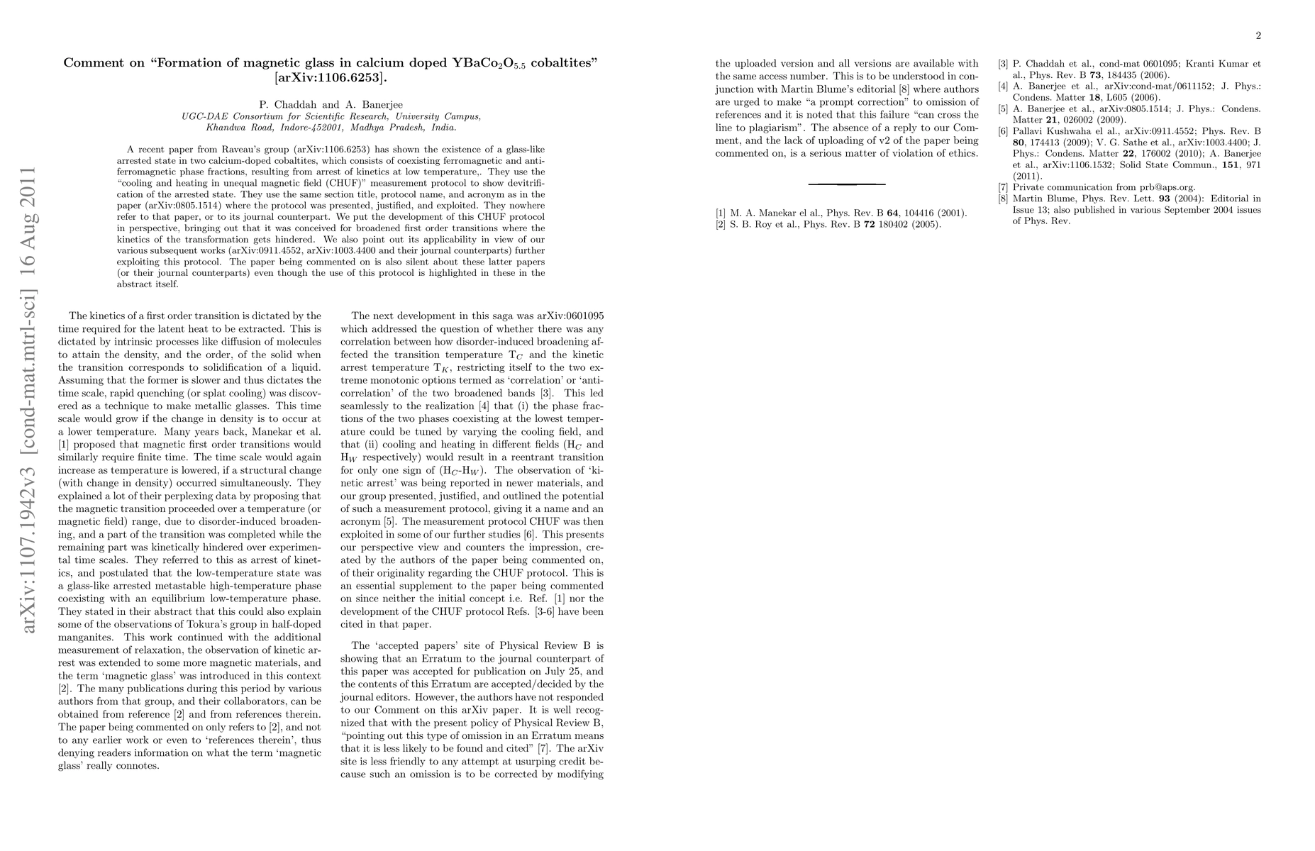 A recent paper from Raveau's group (arXiv:1106.6253) has shown the existence of a glass-like arrested state in two calcium-doped cobaltites, which consists of coexisting ferromagnetic and antiferromagnetic phase fractions, resulting from arrest of kinetics at low temperature,. They use the "cooling and heating in unequal magnetic field (CHUF)" measurement protocol to show devitrification of the arrested state. They use the same section title, protocol name, and acronym as in the paper (arXiv:0805.1514) where the protocol was presented, justified, and exploited. They nowhere refer to that paper, or to its journal counterpart. We put the development of this CHUF protocol in perspective, bringing out that it was conceived for broadened first order transitions where the kinetics of the transformation gets hindered. We also point out its applicability in view of our various subsequent works (arXiv:0911.4552, arXiv:1003.4400 and their journal counterparts) further exploiting this protocol. The paper being commented on is also silent about these latter papers (or their journal counterparts) even though the use of this protocol is highlighted in these in the abstract itself.