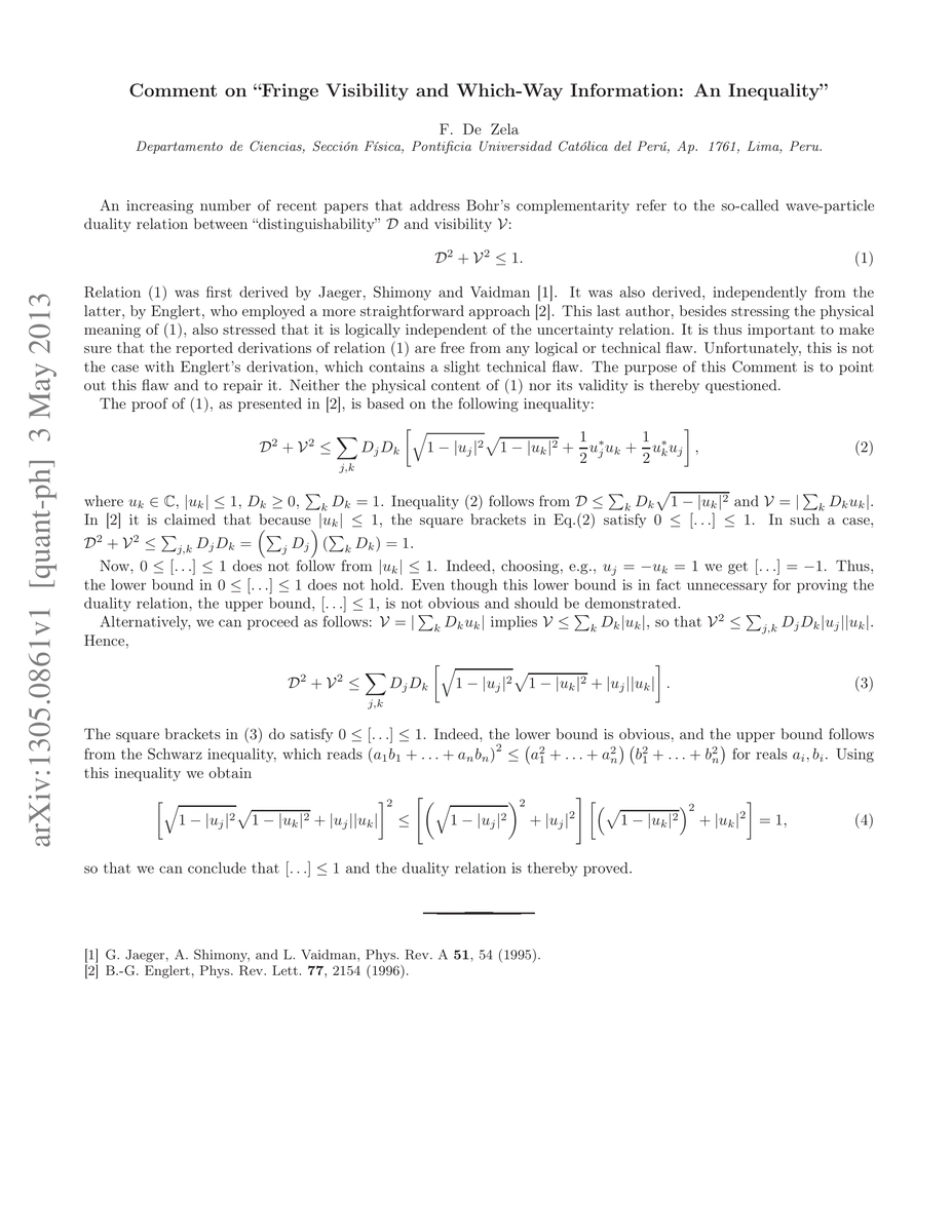We comment on one of the earliest derivations of the so-called wave-particle duality relation. Our aim is to point out a slight technical flaw in the proof, fixing it. Neither the physical content of the duality relation nor its validity is thereby questioned.