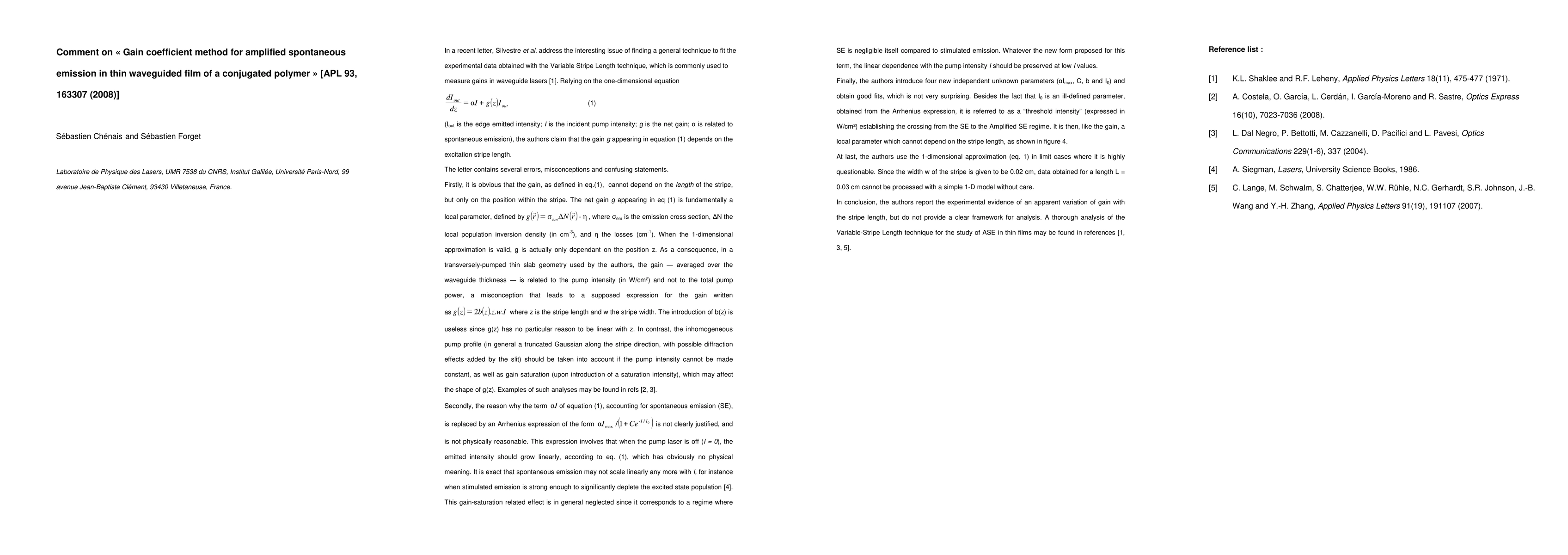 Comment on " Gain coefficient method for amplified spontaneous emission in thin waveguided film of a conjugated polymer " [APL 93, 163307 (2008)]